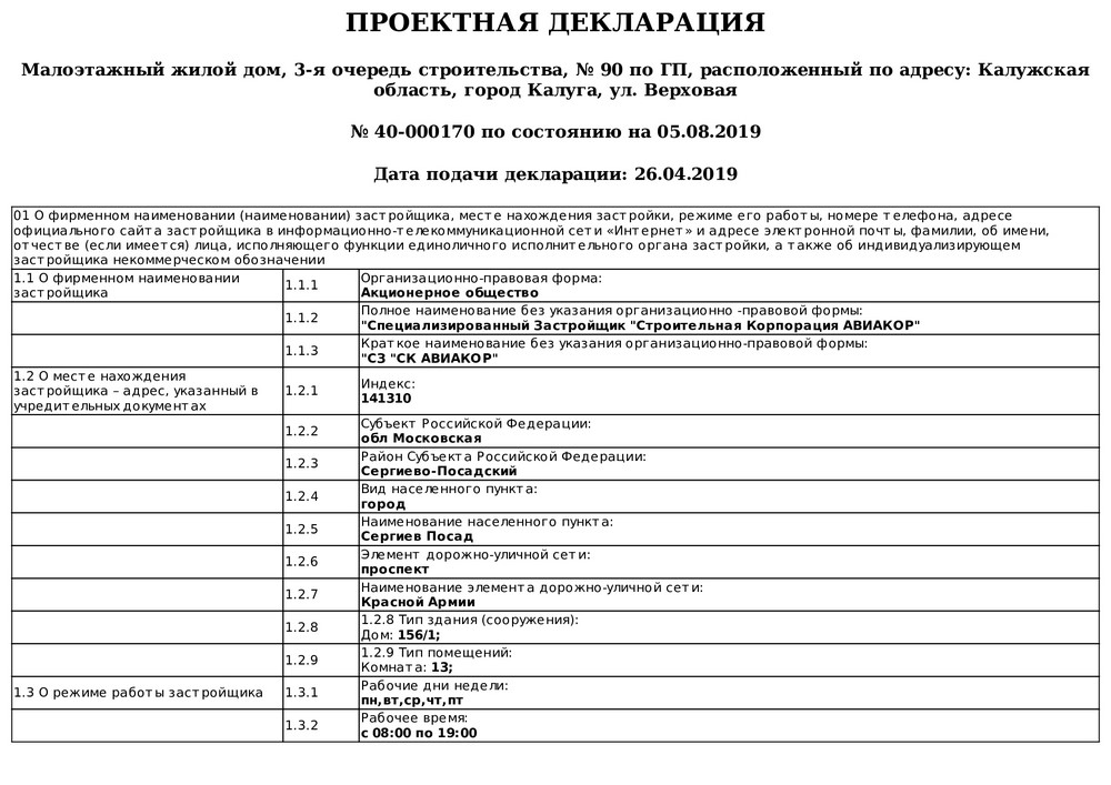 Изменения от 05.08.2019г. к проектной декларации "Малоэтажный жилой дом № 90 по ГП"
