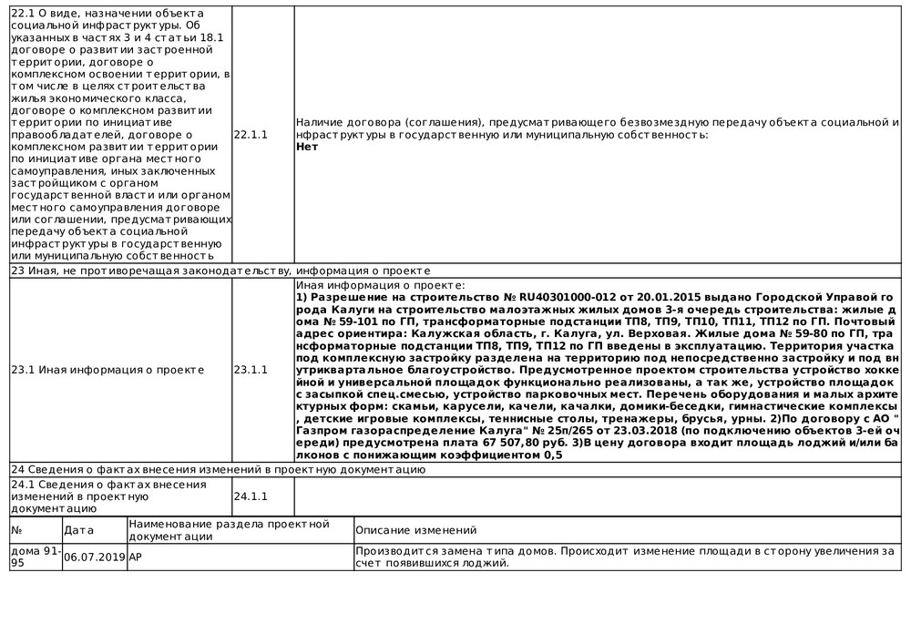 Изменения от 05.08.2019г. к проектной декларации "Малоэтажный жилой дом № 95 по ГП"