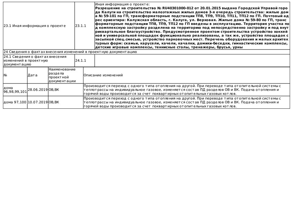 Изменения от 05.08.2019г. к проектной декларации "Малоэтажный жилой дом № 97 по ГП"
