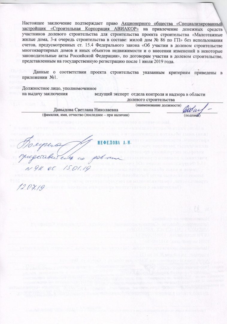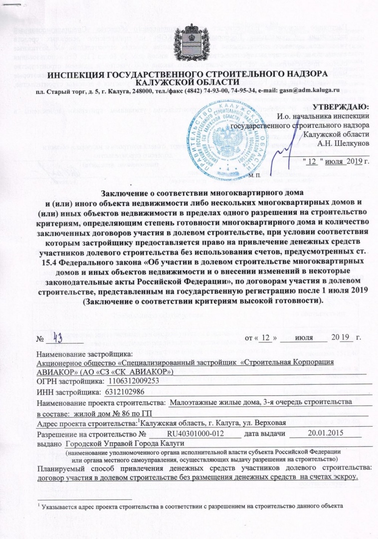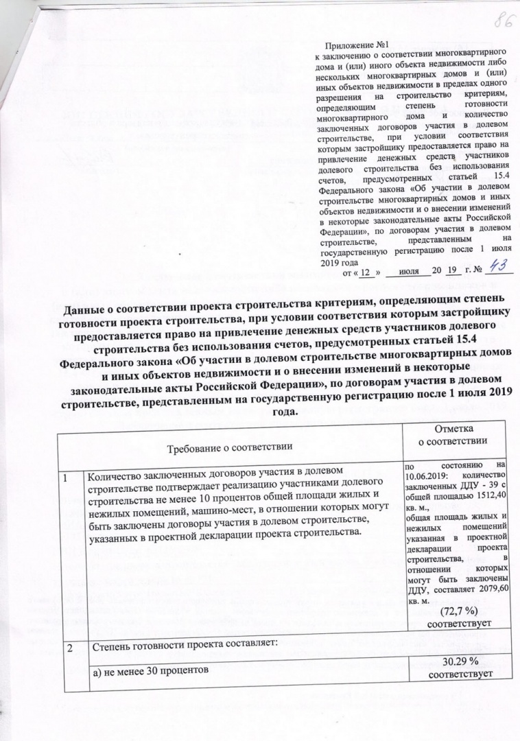 Заключение о соответствии критериям высокой готовности, 86 дом по ГП
