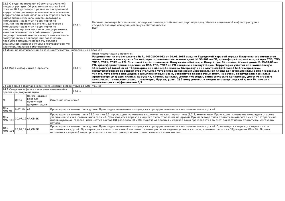 Изменения от 16.10.2019 к проектной декларации "Малоэтажный жилой дом № 96 по ГП"