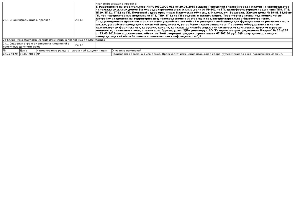 Изменения от 22.10.2019 к проектной декларации "Малоэтажный жилой дом № 95 по ГП"