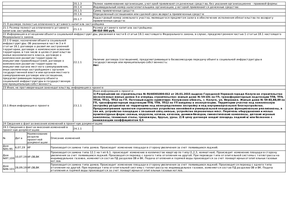Изменения от 22.10.2019 к проектной декларации "Малоэтажный жилой дом № 101 по ГП"