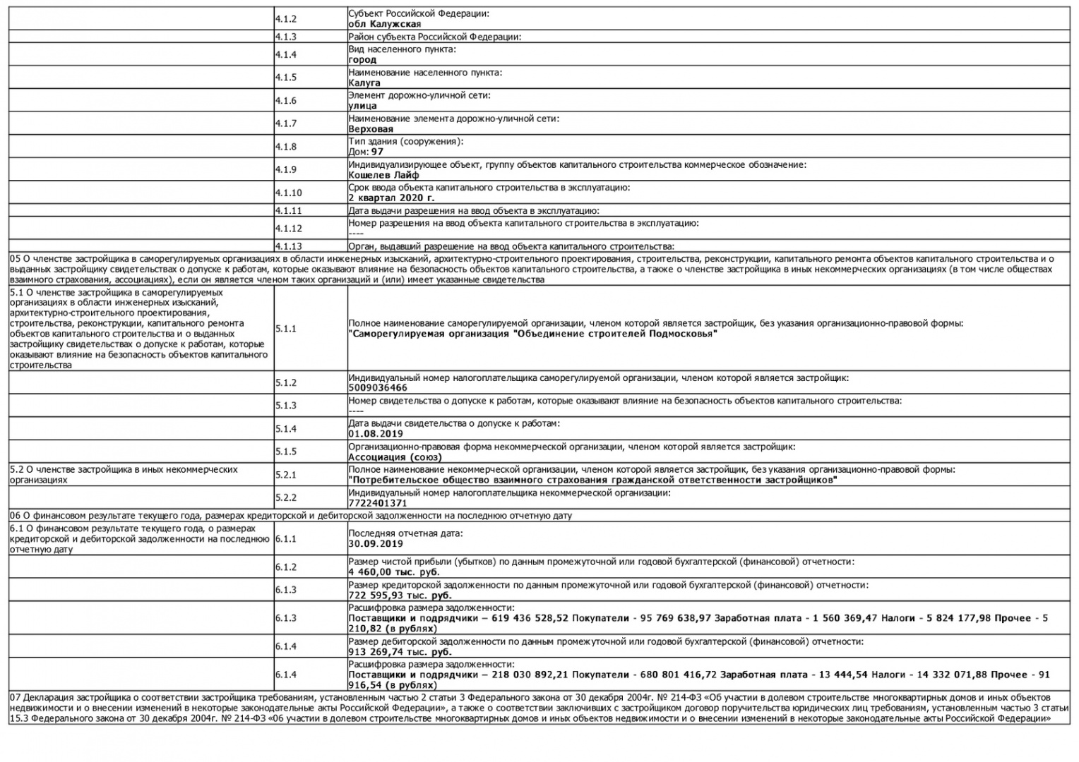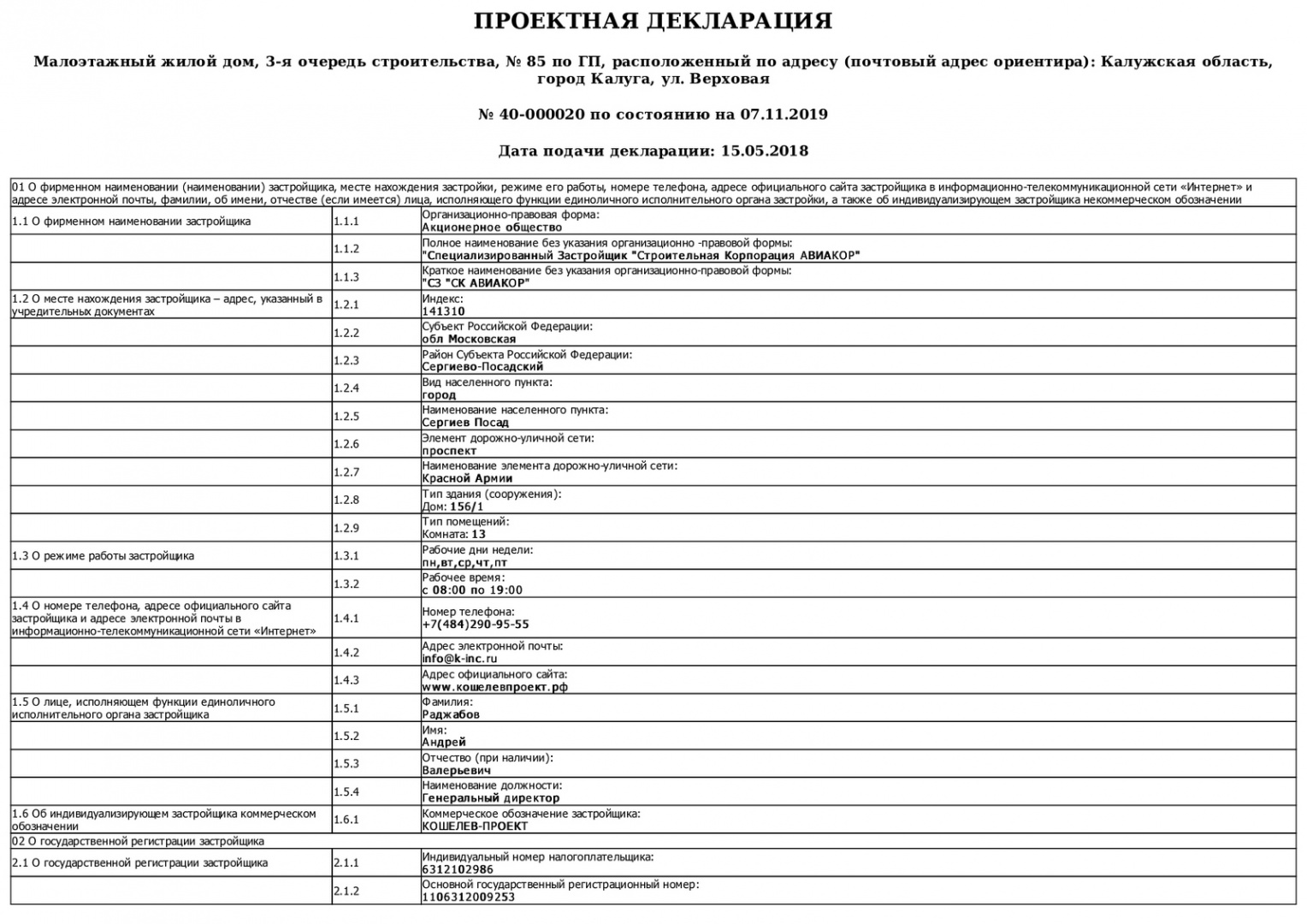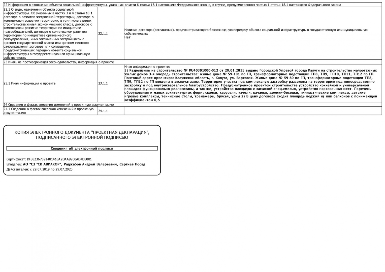 Изменения от 07.11.2019 к проектной декларации "Малоэтажный жилой дом № 85 по ГП"
