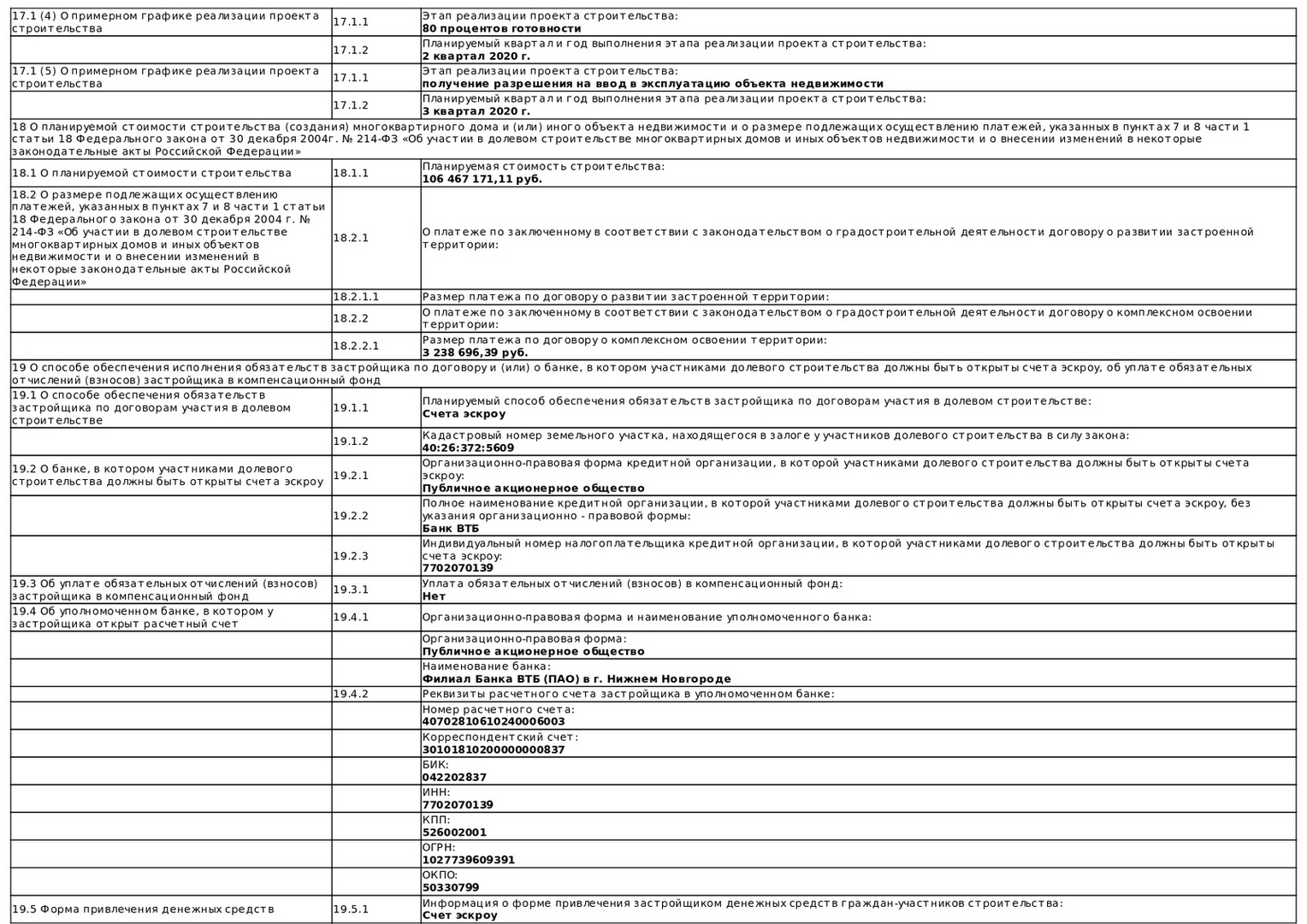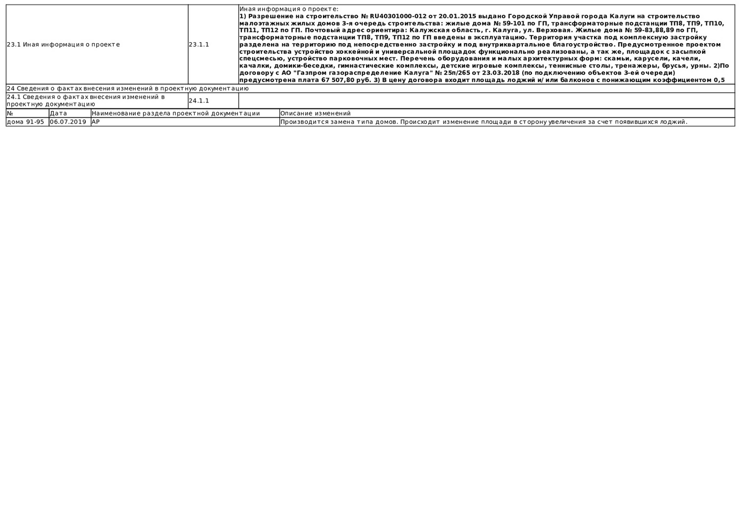 Изменения от 06.11.2019 к проектной декларации "Малоэтажный жилой дом № 93 по ГП"