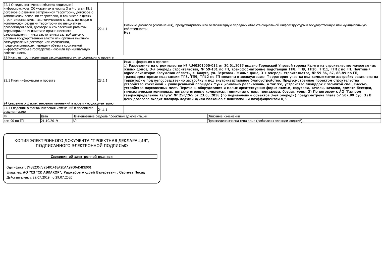 Изменения от 07.02.2020 к проектной декларации "Малоэтажный жилой дом № 90 по ГП"