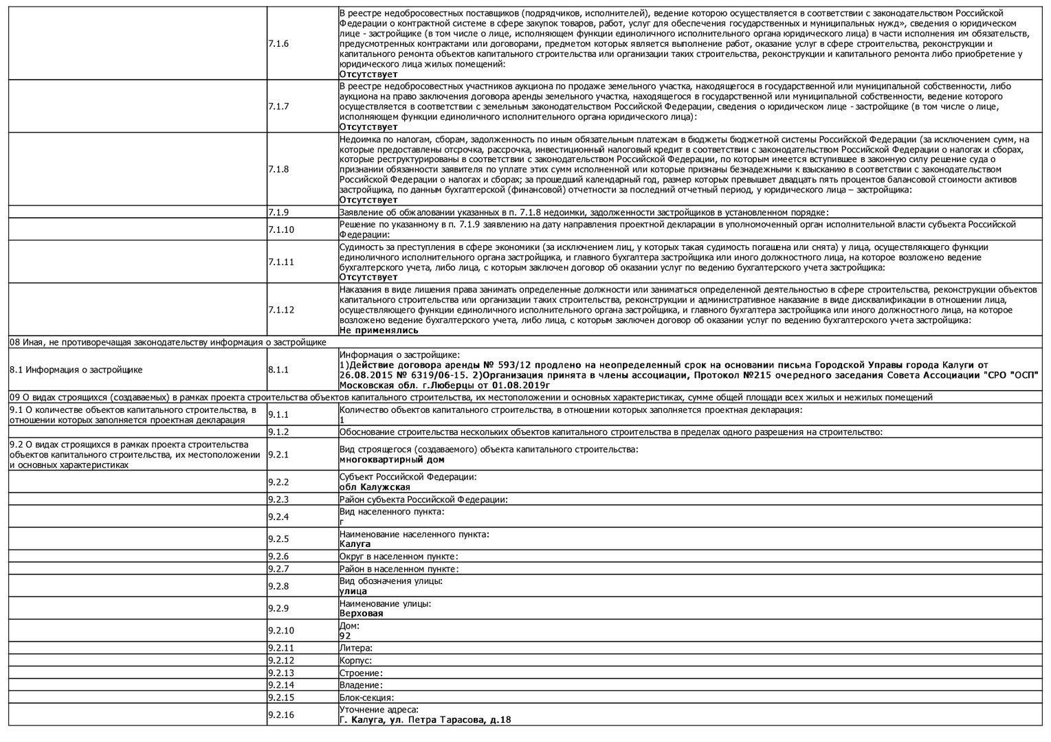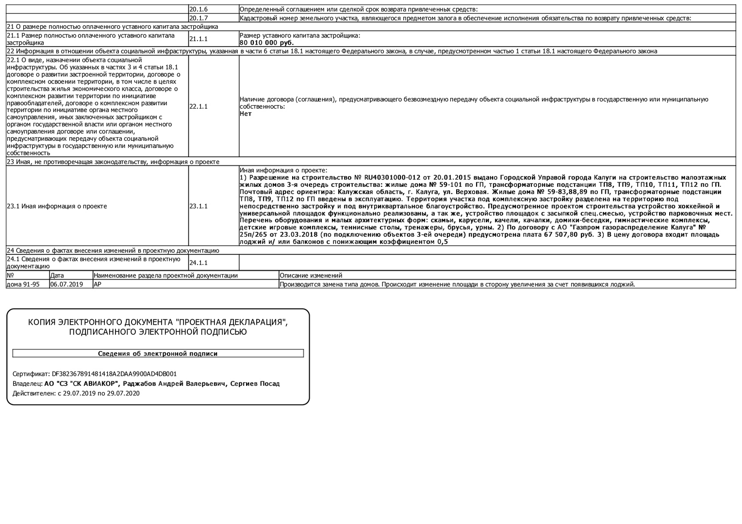 Изменения от 09.12.2019 к проектной декларации "Малоэтажный жилой дом № 92 по ГП"