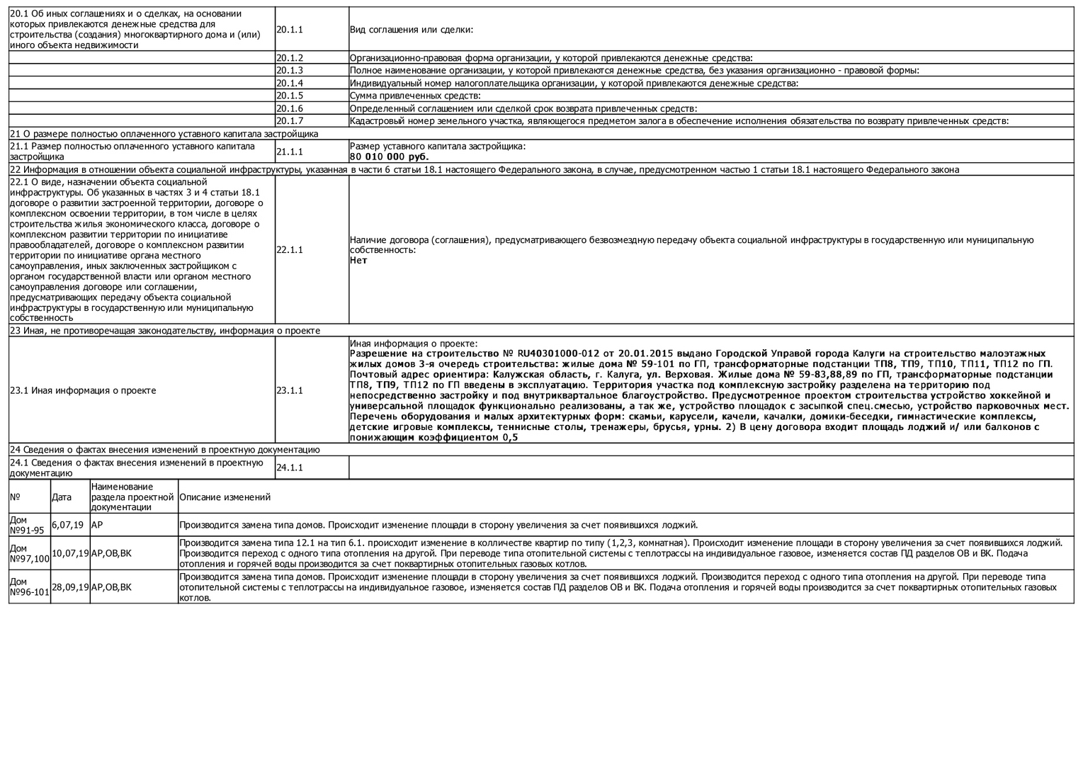 Изменения от 04.12.2019 к проектной декларации "Малоэтажный жилой дом № 96 по ГП"