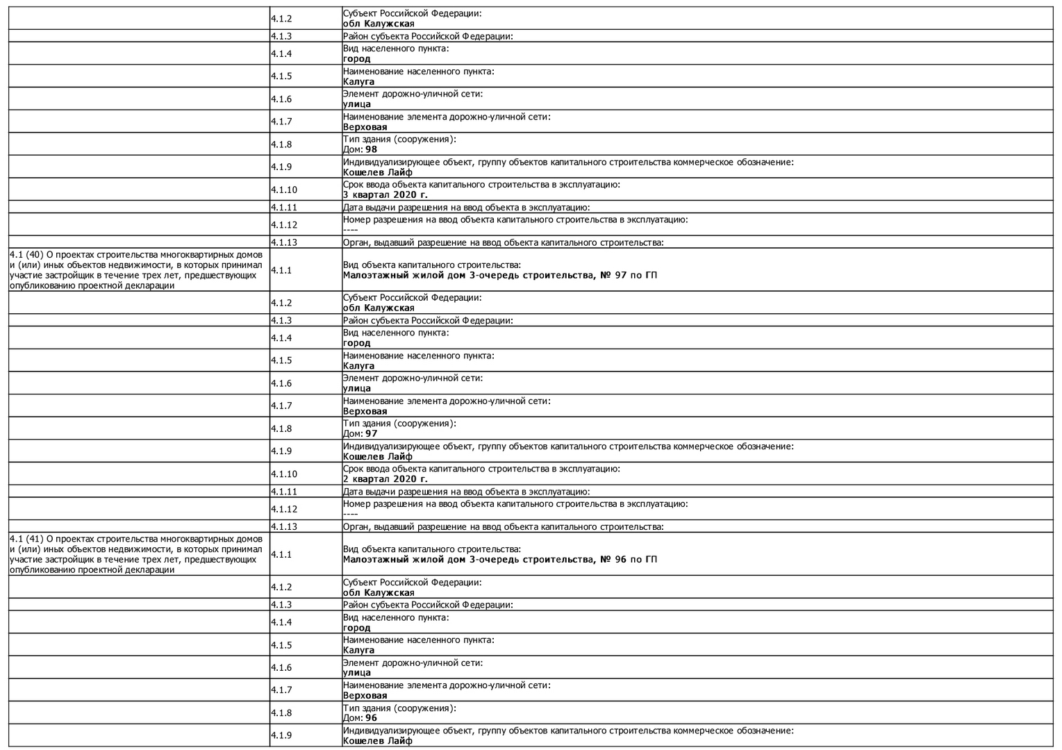 Изменения от 04.02.2020 к проектной декларации "Малоэтажный жилой дом № 98 по ГП"
