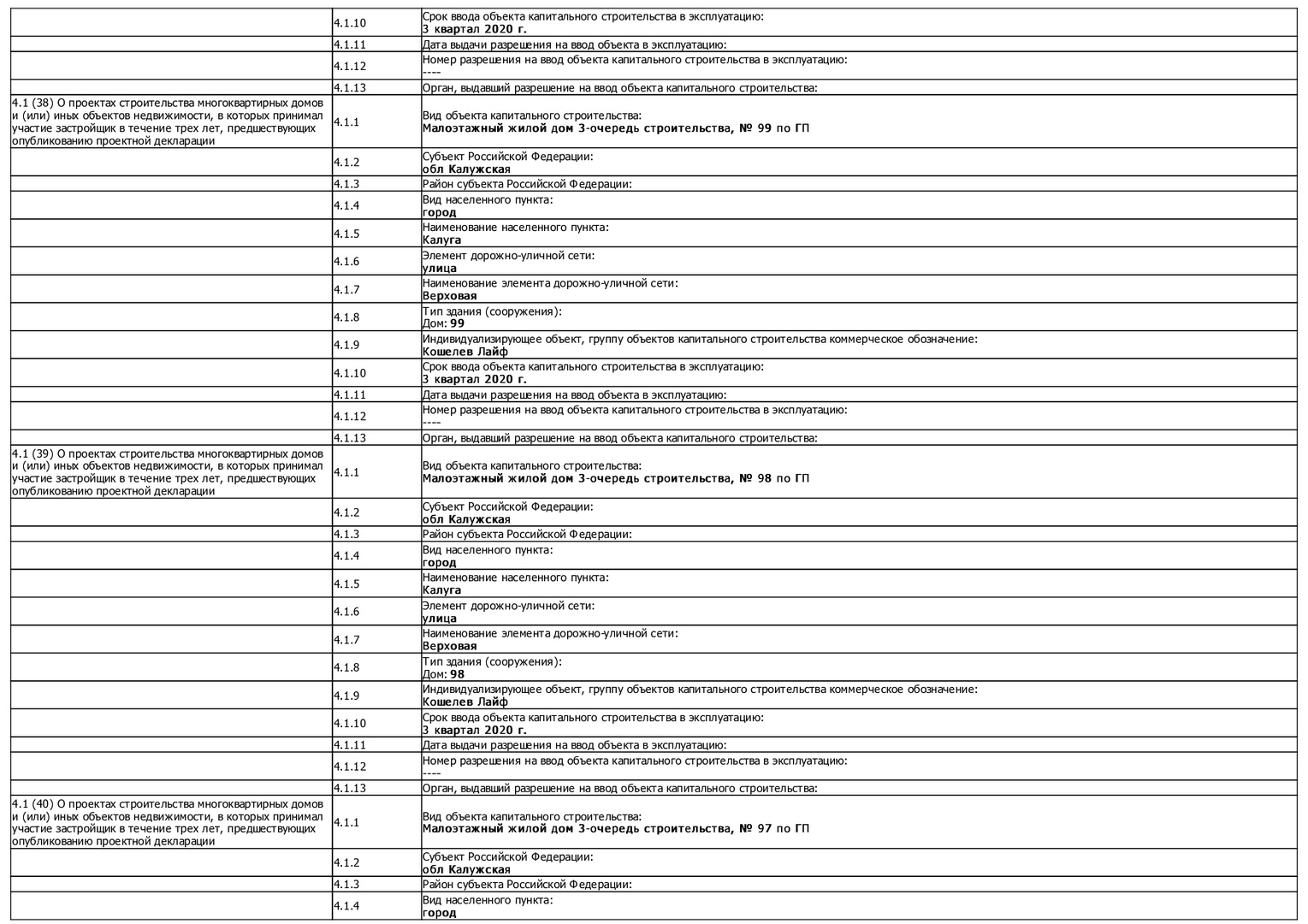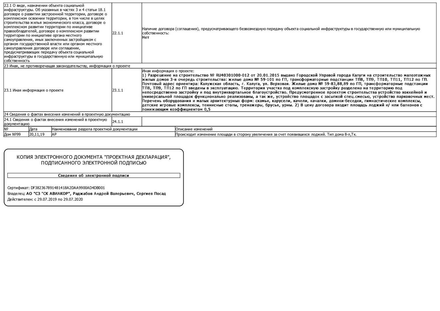 Изменения от 24.12.2019 к проектной декларации "Малоэтажный жилой дом № 99 по ГП"