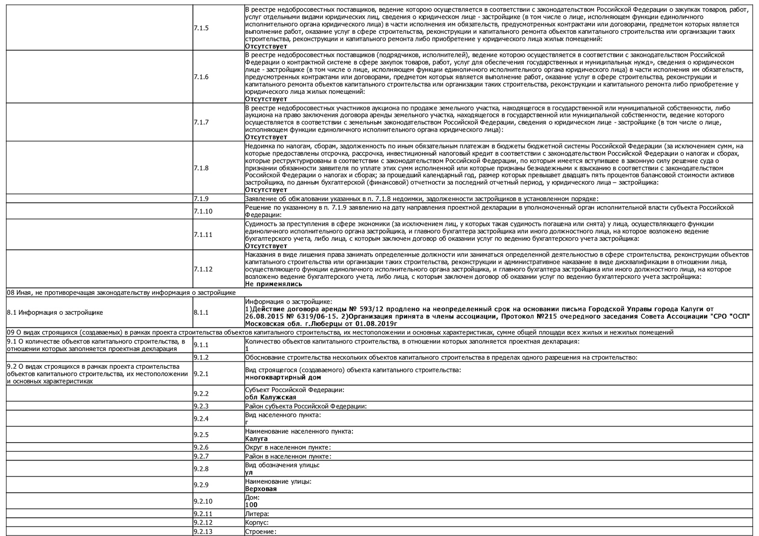 Изменения от 12.01.2020 к проектной декларации "Малоэтажный жилой дом № 100 по ГП"