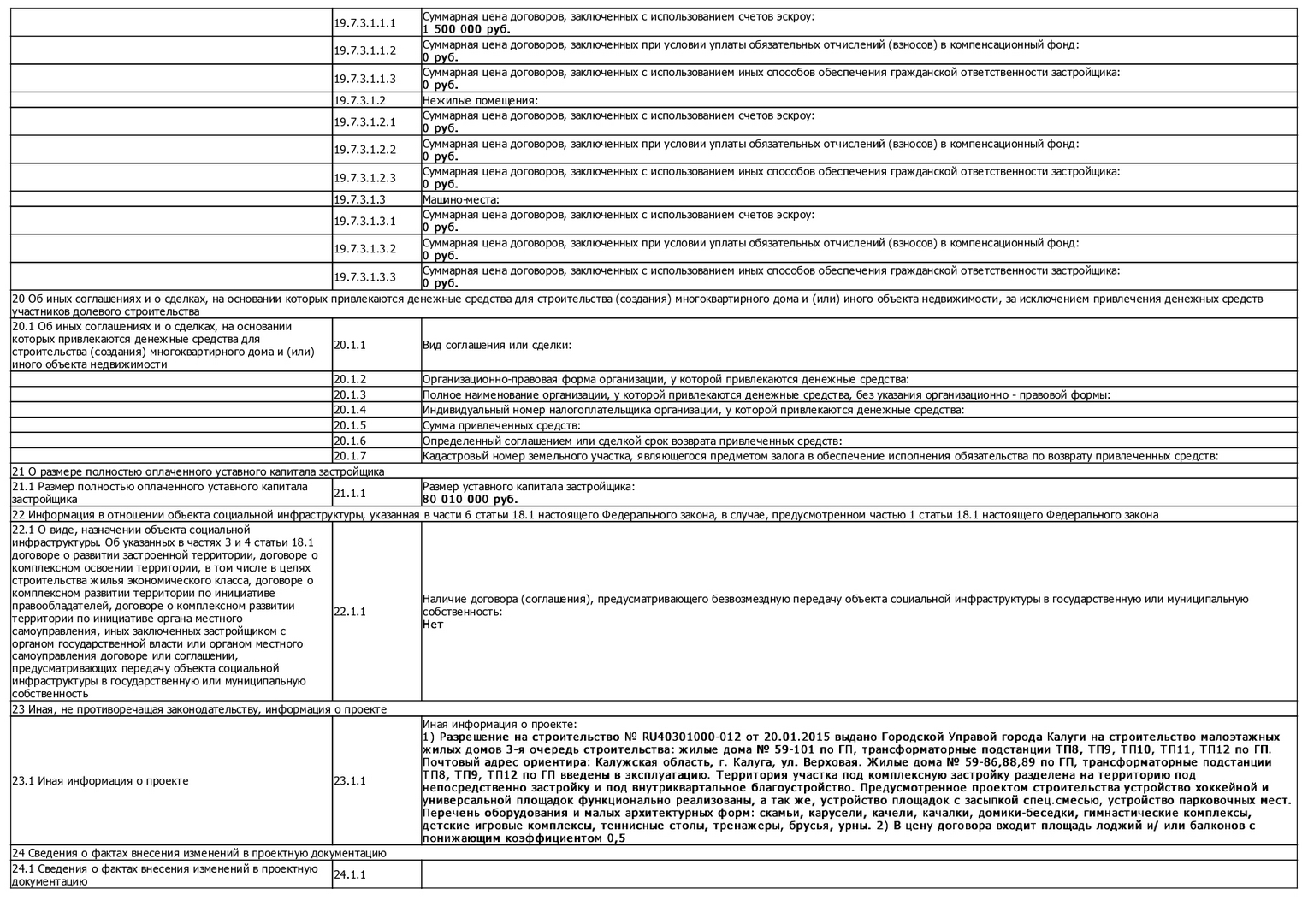 Изменения от 12.01.2020 к проектной декларации "Малоэтажный жилой дом № 101 по ГП"