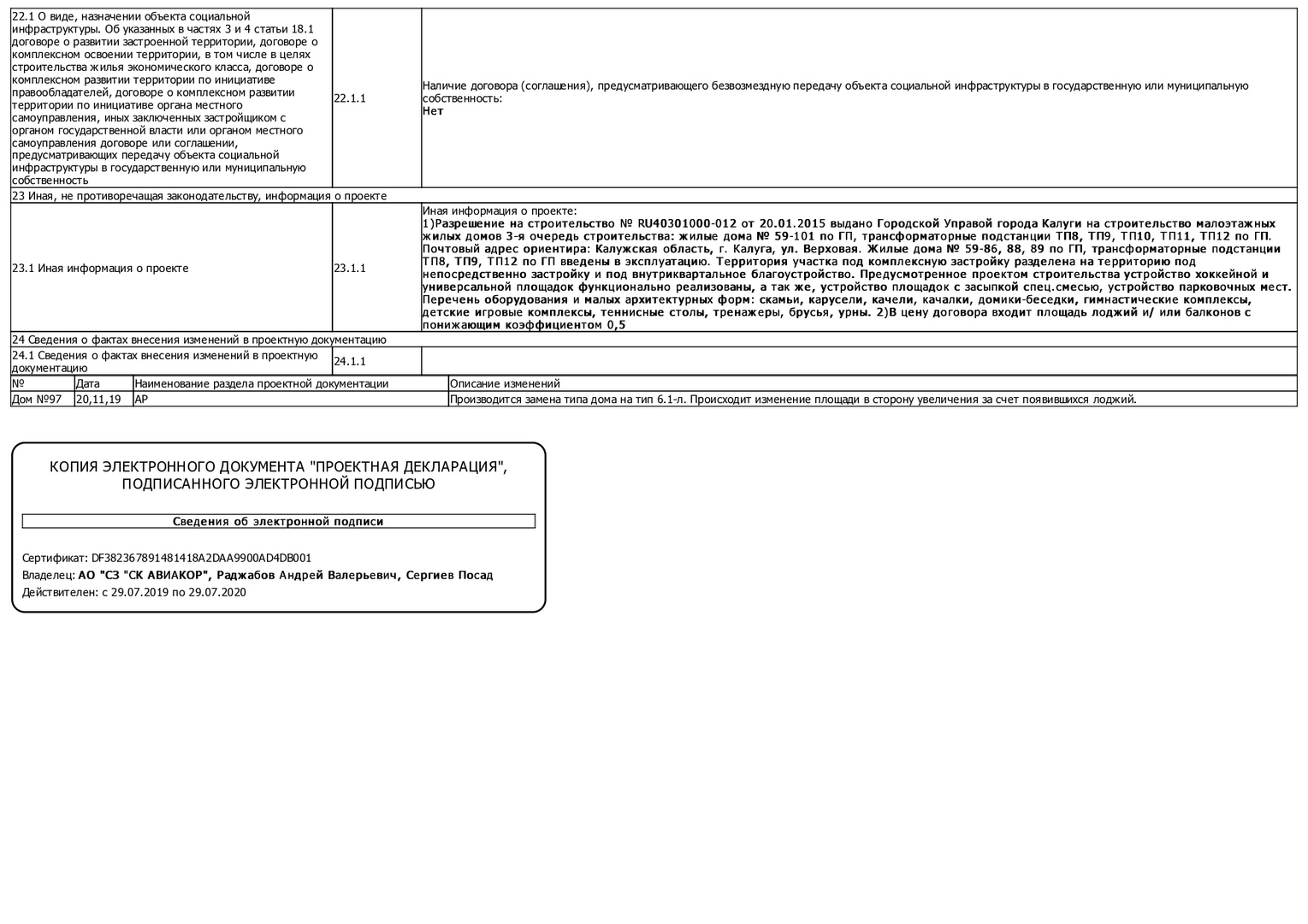 Изменения от 12.01.2020 к проектной декларации "Малоэтажный жилой дом № 97 по ГП"