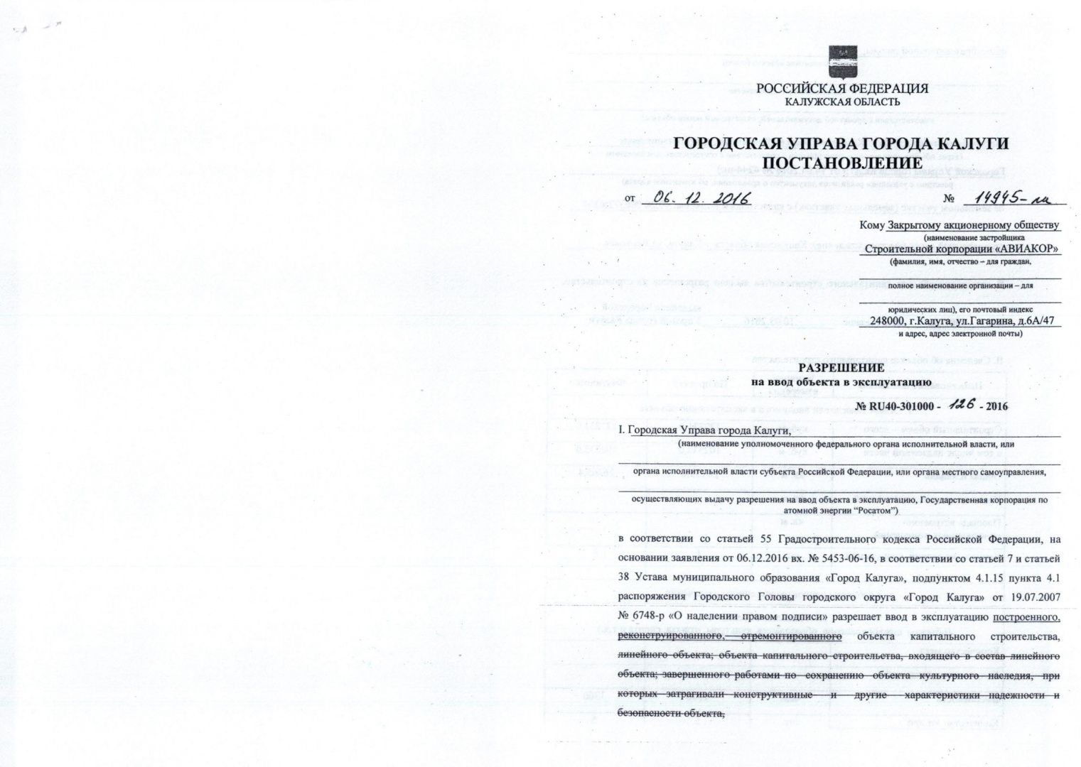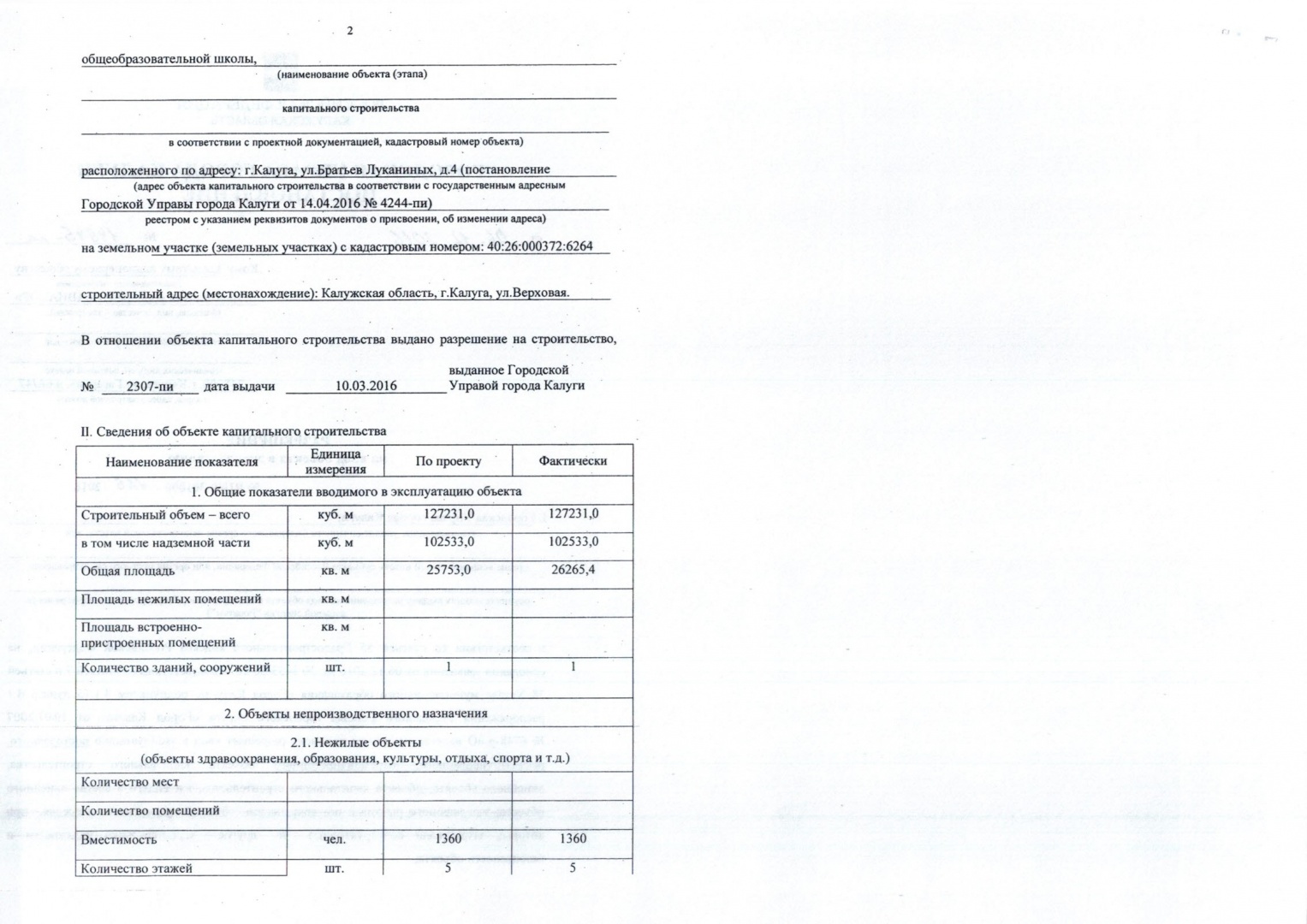 Разрешение на ввод объекта в эксплуатацию "Общеобразовательная школа" от 06.12.2016 №14945-пи