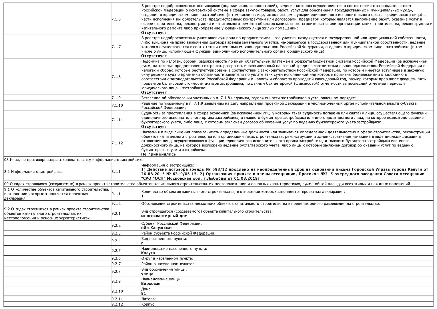 Изменения от 09.10.2019 к проектной декларации "Малоэтажный жилой дом № 81 по ГП"