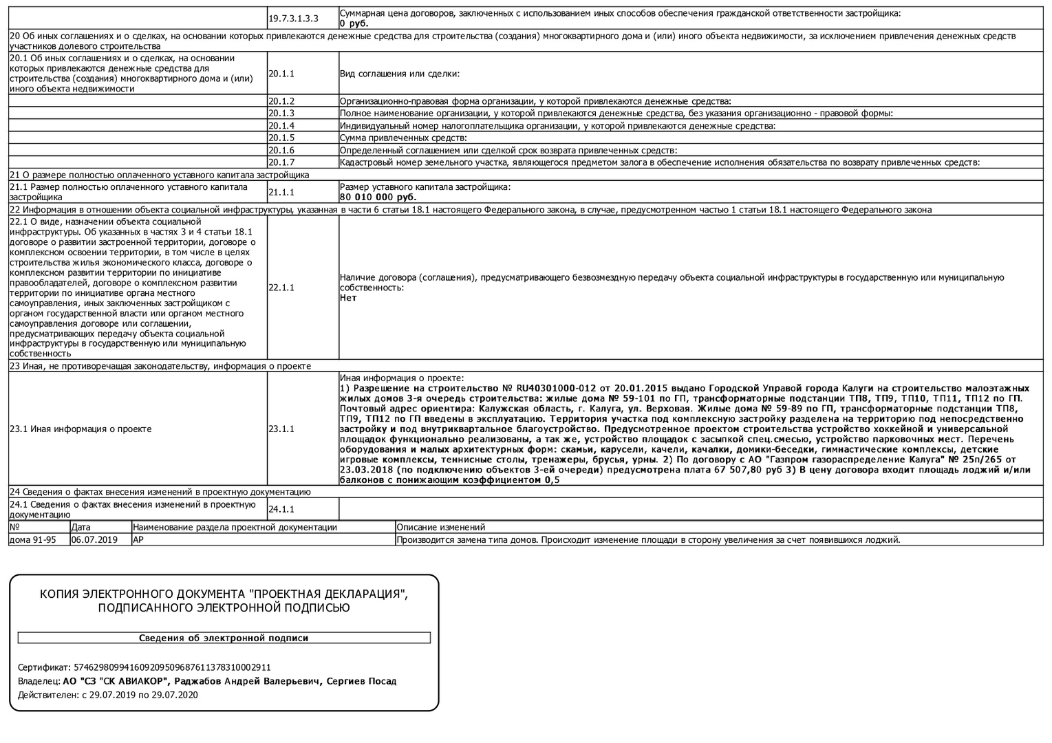 Изменения от 02.04.2020 к проектной декларации "Малоэтажный жилой дом № 94 по ГП"