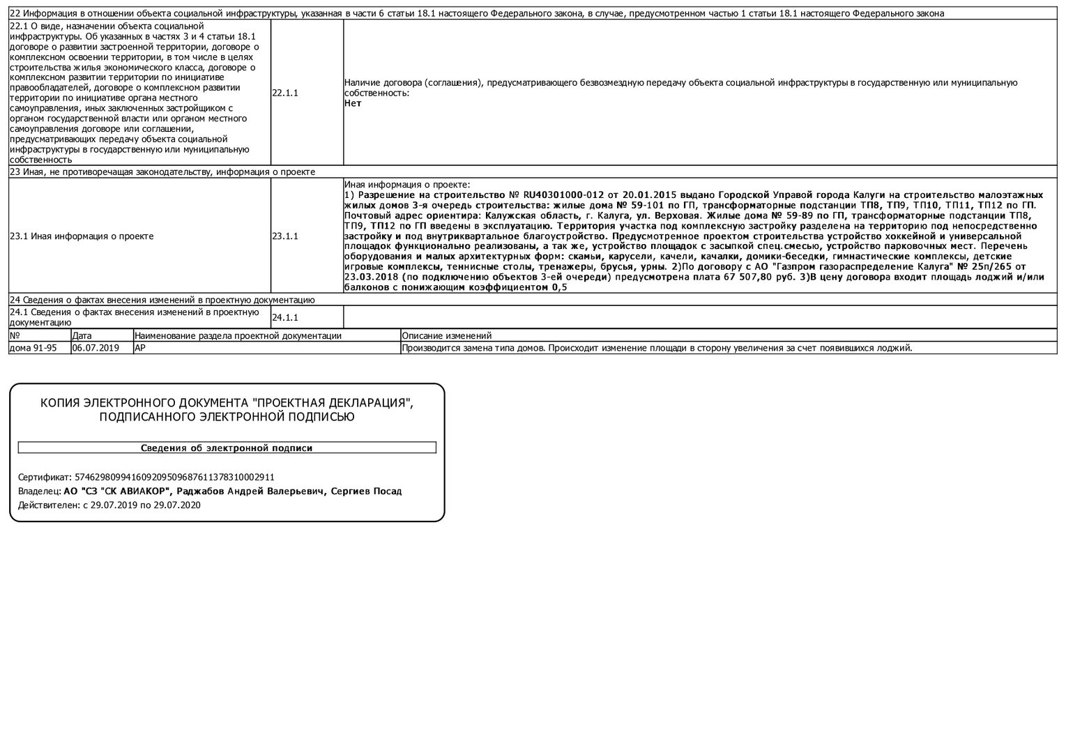 Изменения от 03.06.2020 к проектной декларации "Малоэтажный жилой дом № 95 по ГП"