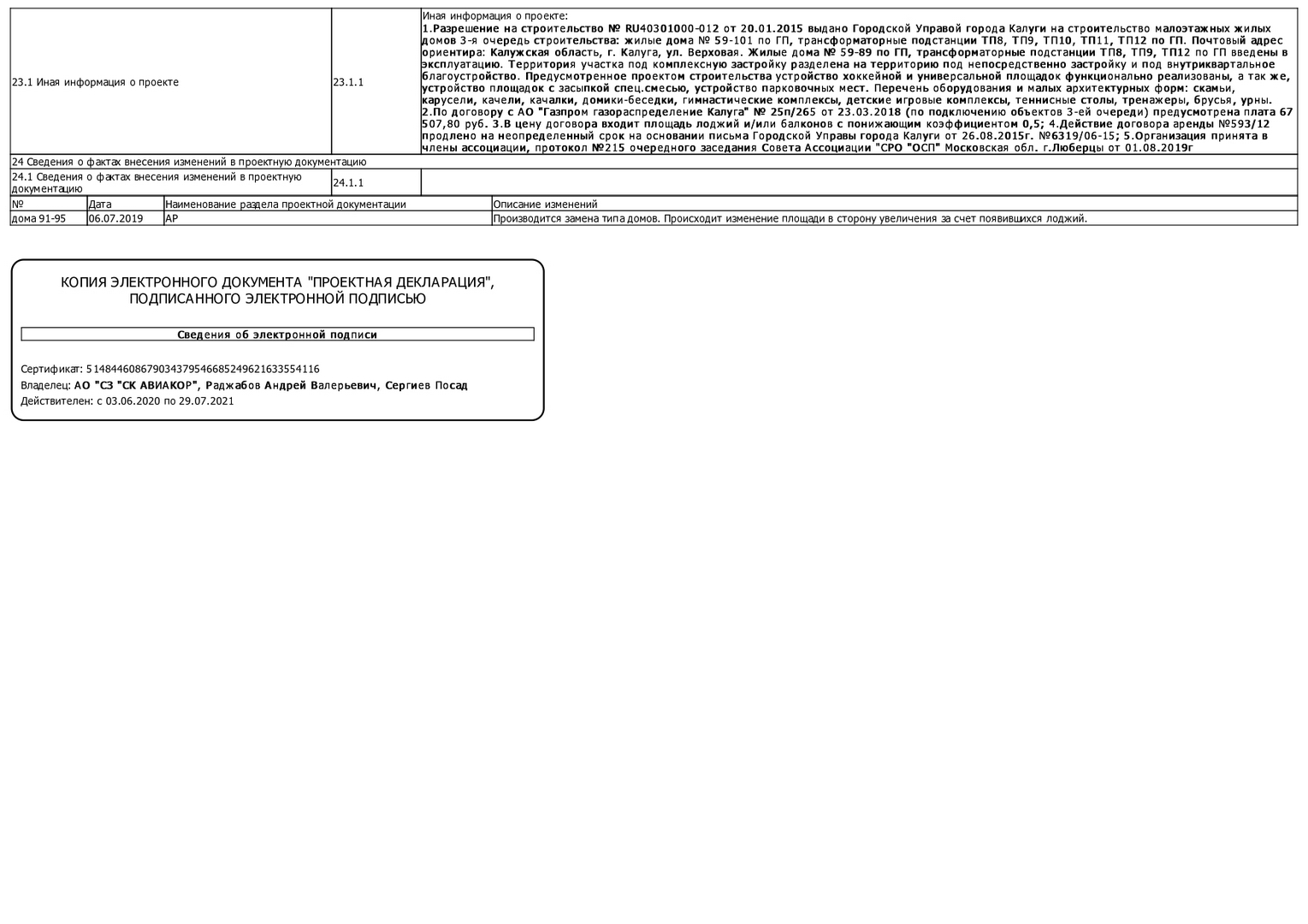 Изменения от 08.07.2020 к проектной декларации "Малоэтажный жилой дом № 95 по ГП"