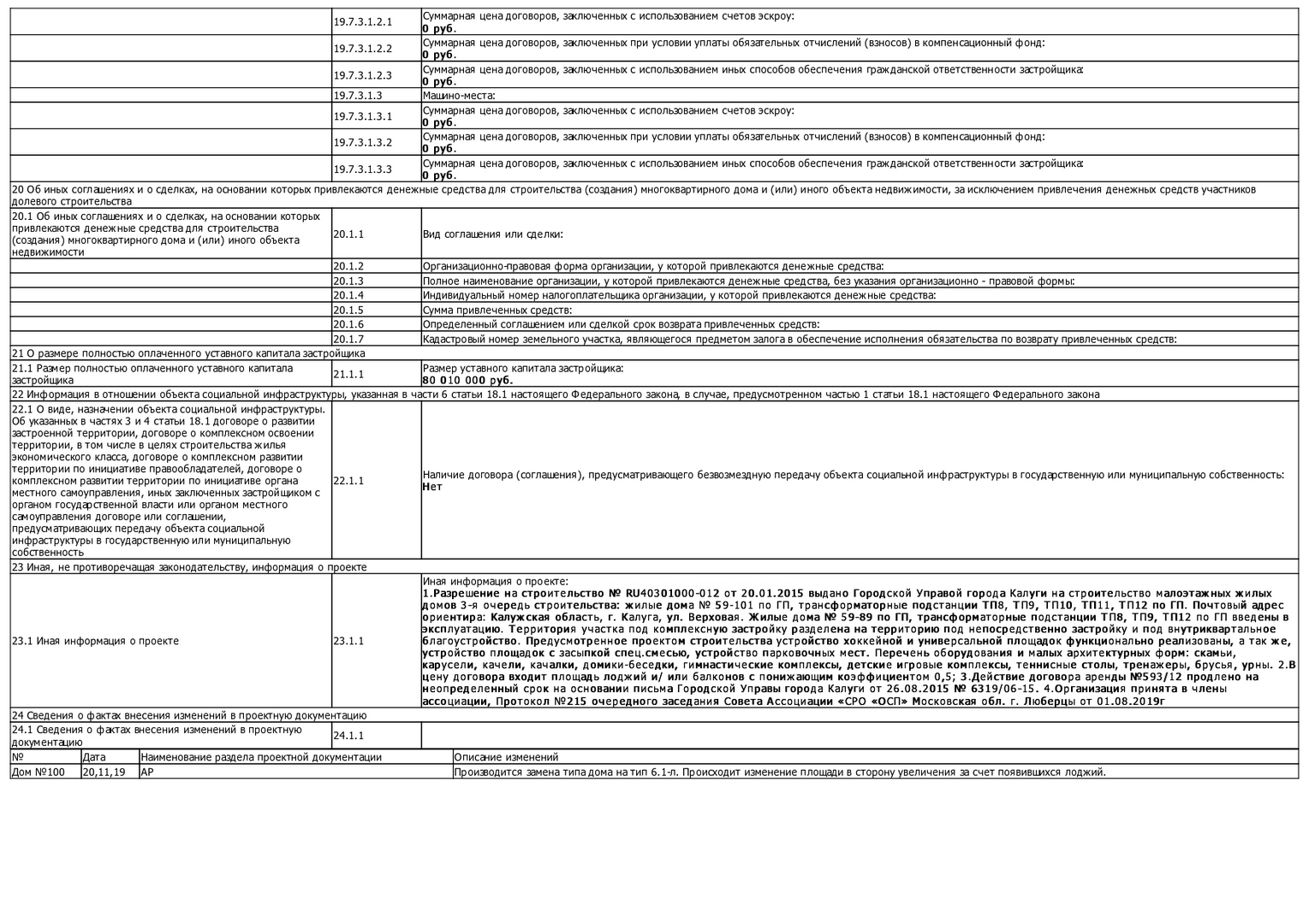 Изменения от 08.07.2020 к проектной декларации "Малоэтажный жилой дом № 100 по ГП"
