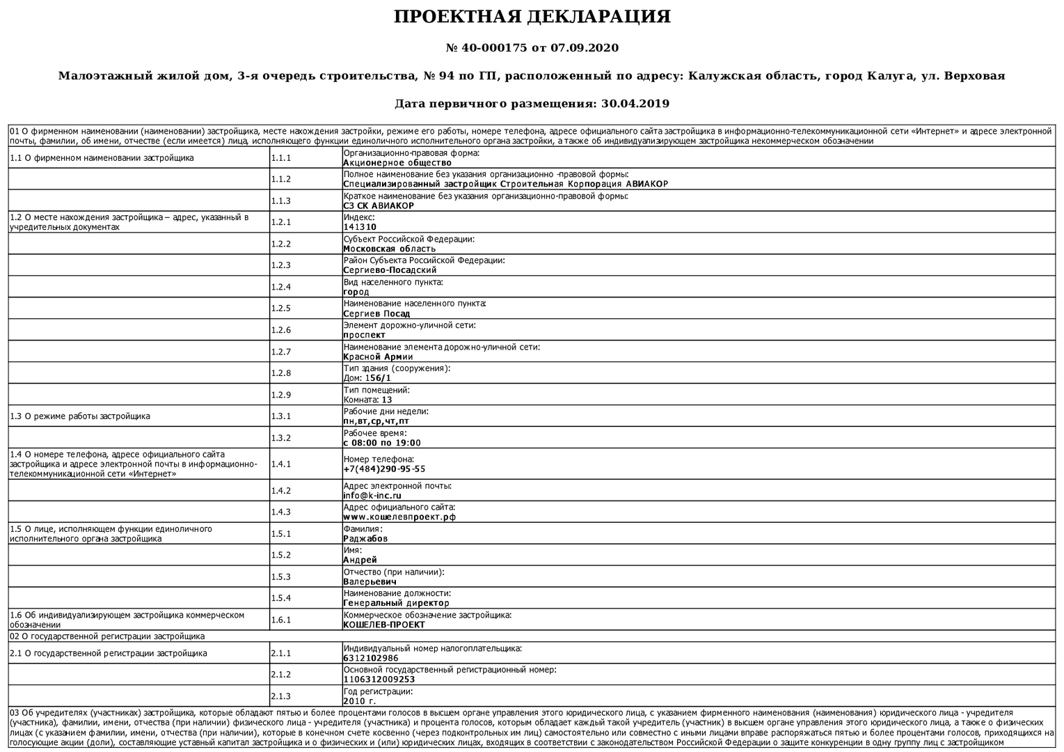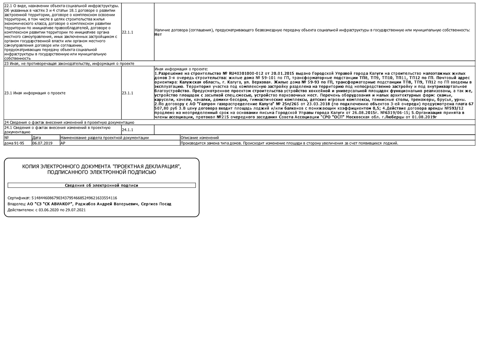 Изменения от 07.09.2020 к проектной декларации "Малоэтажный жилой дом № 94 по ГП"