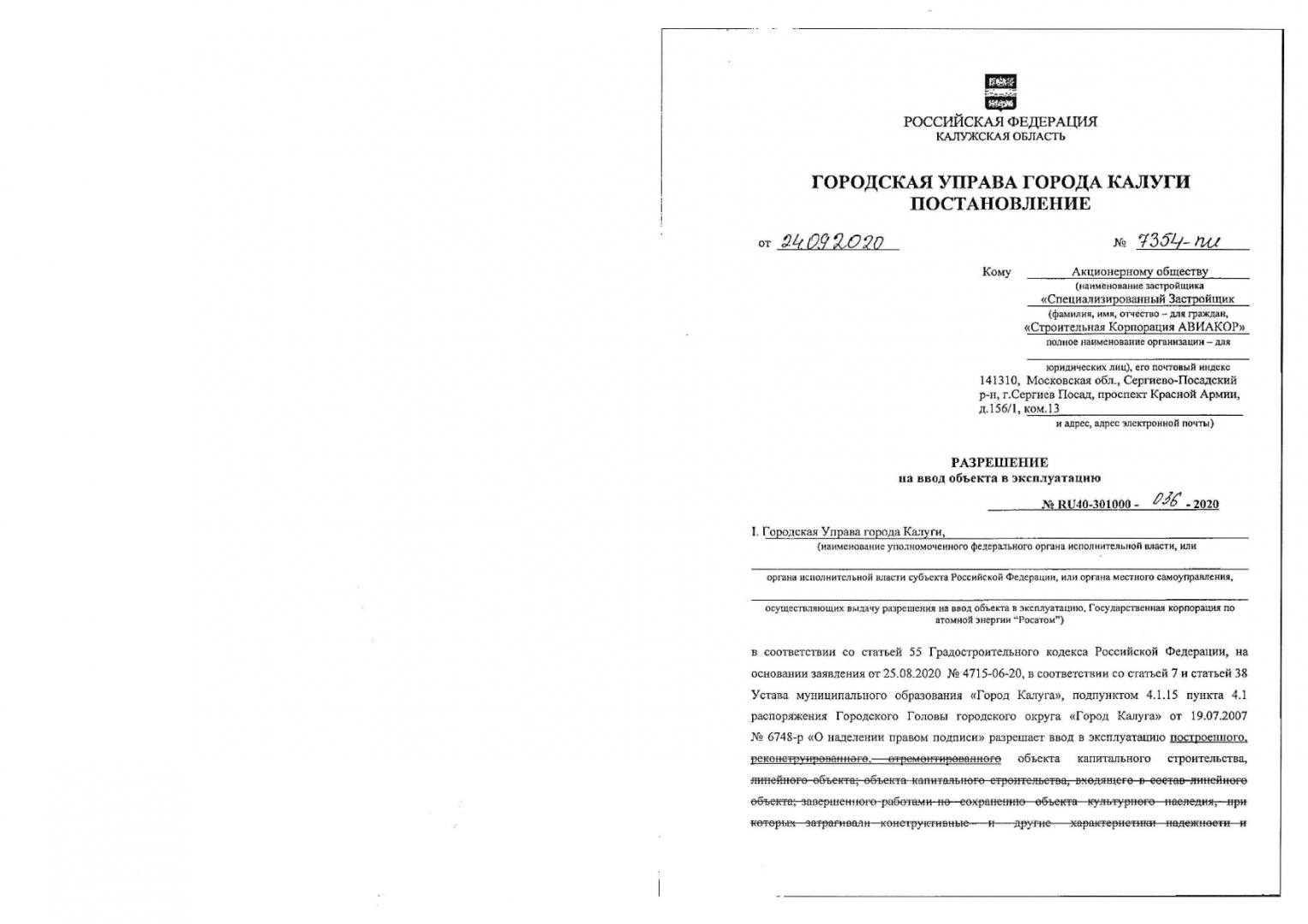 Разрешения на ввод объектов в эксплуатацию