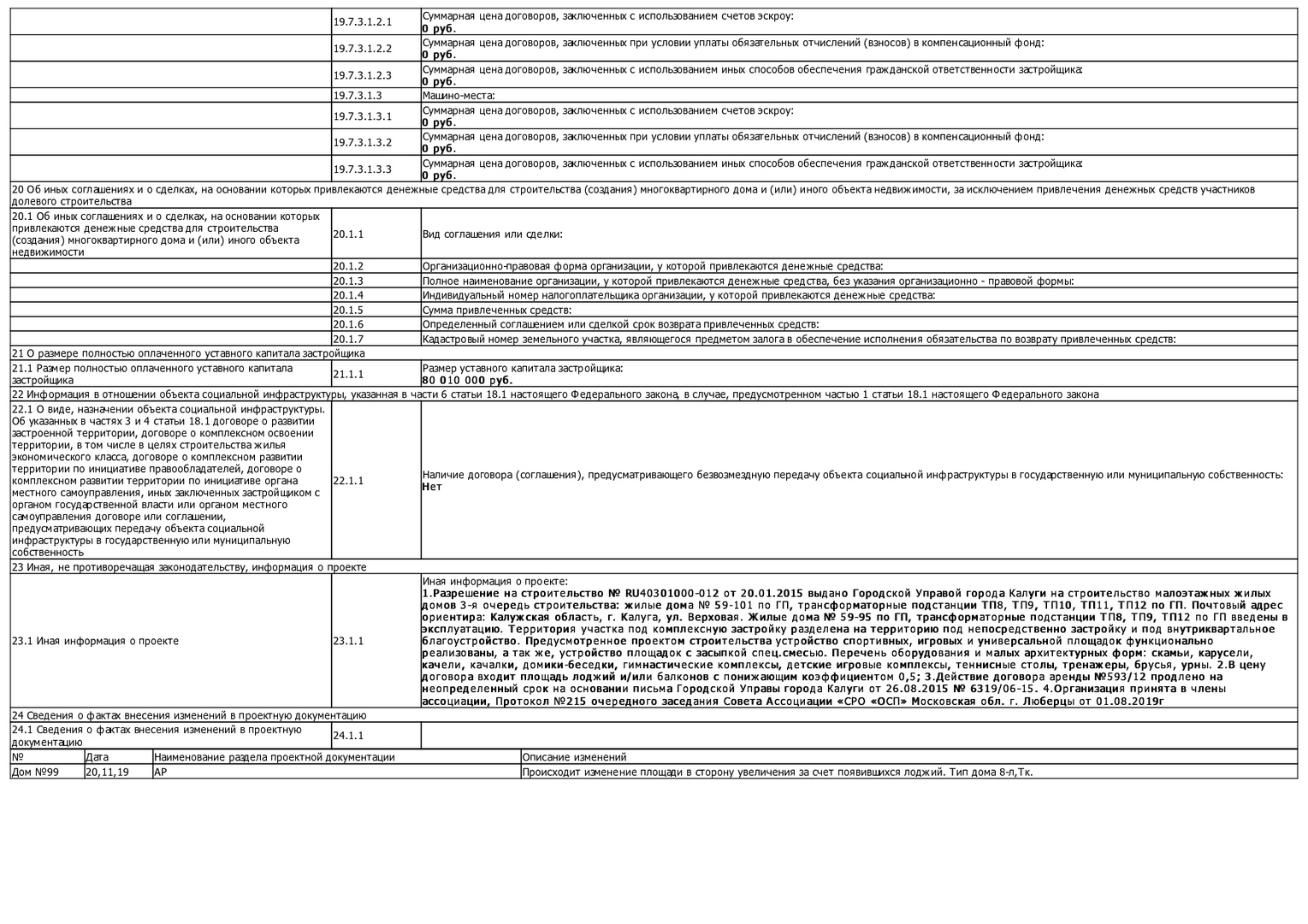 Изменения от 14.10.2020г. к проектной декларации "Малоэтажный жилой дом № 99 по ГП"