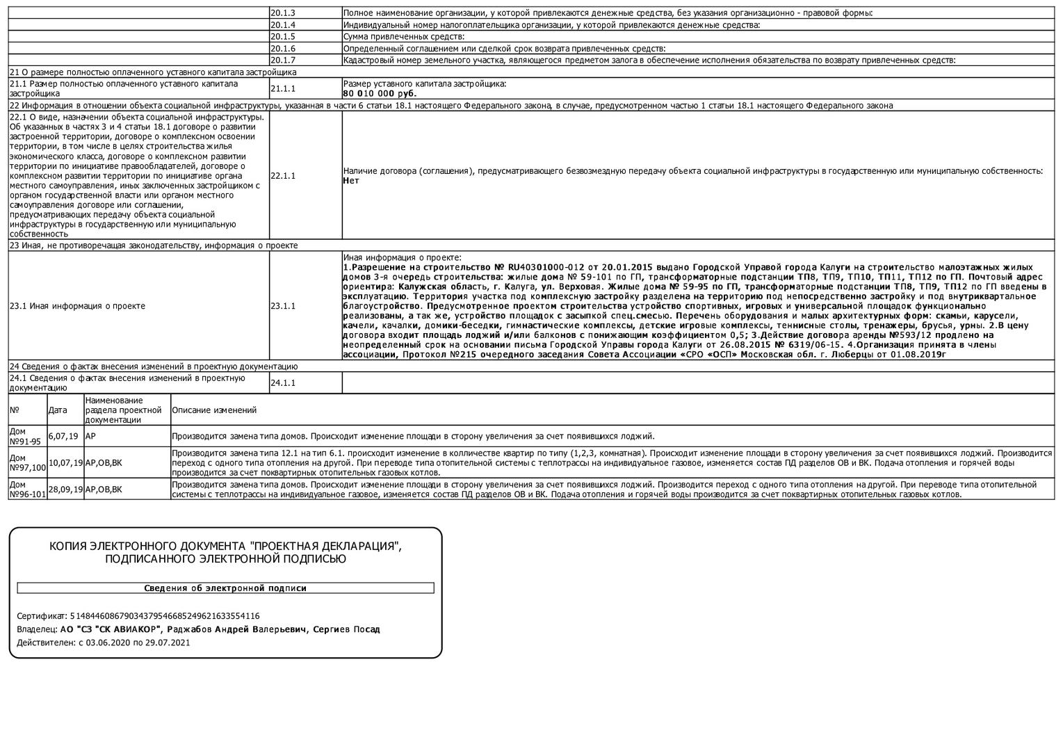 Изменения от 05.10.2020г. к проектной декларации "Малоэтажный жилой дом № 101 по ГП"
