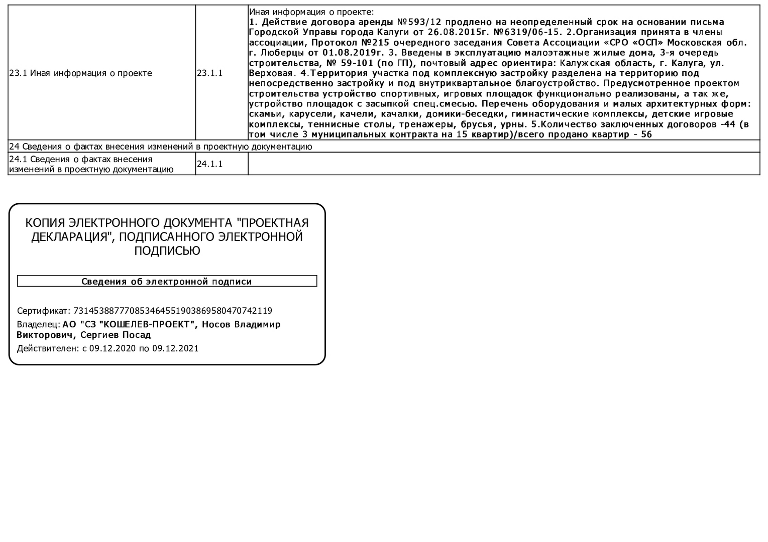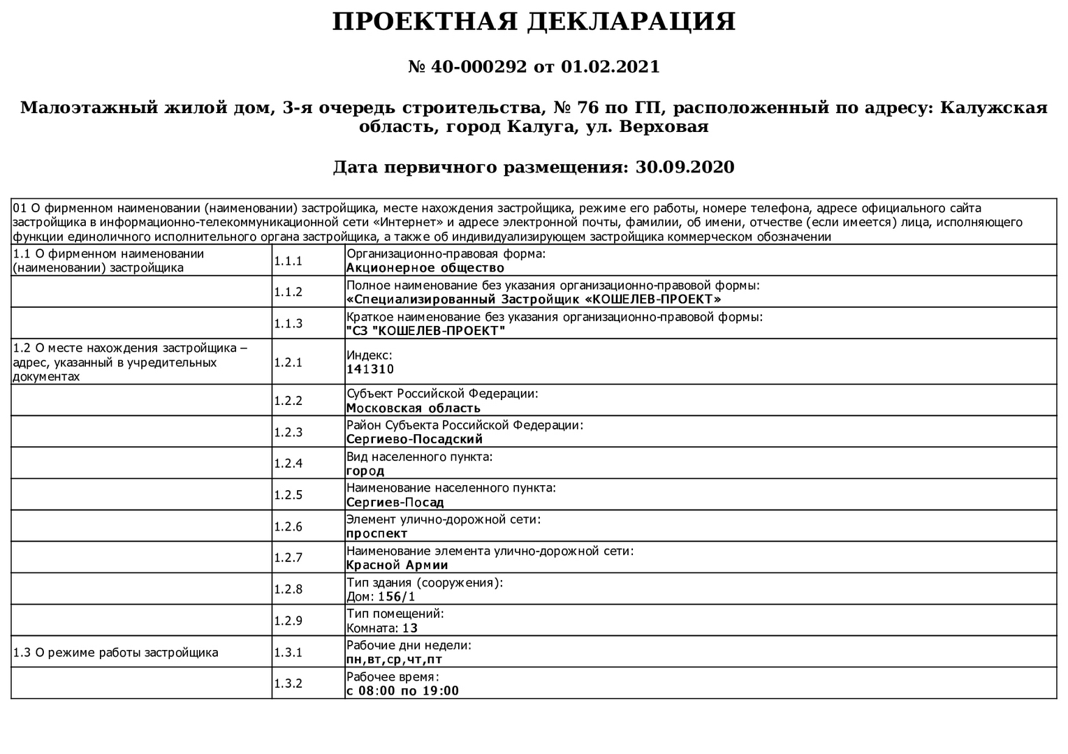 Изменения от 01.02.2021г. к проектной декларации "Малоэтажный жилой дом № 76 по ГП"