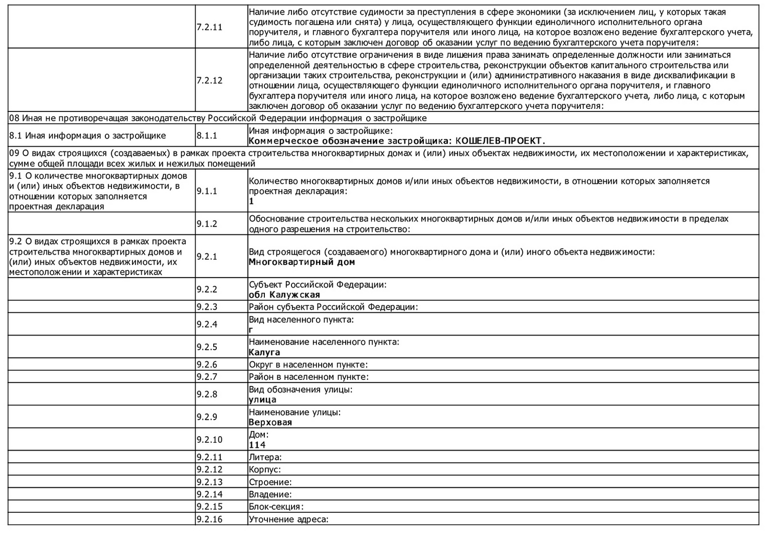 Изменения от 10.08.2021г. к проектной декларации "Малоэтажный жилой дом № 114 по ГП"
