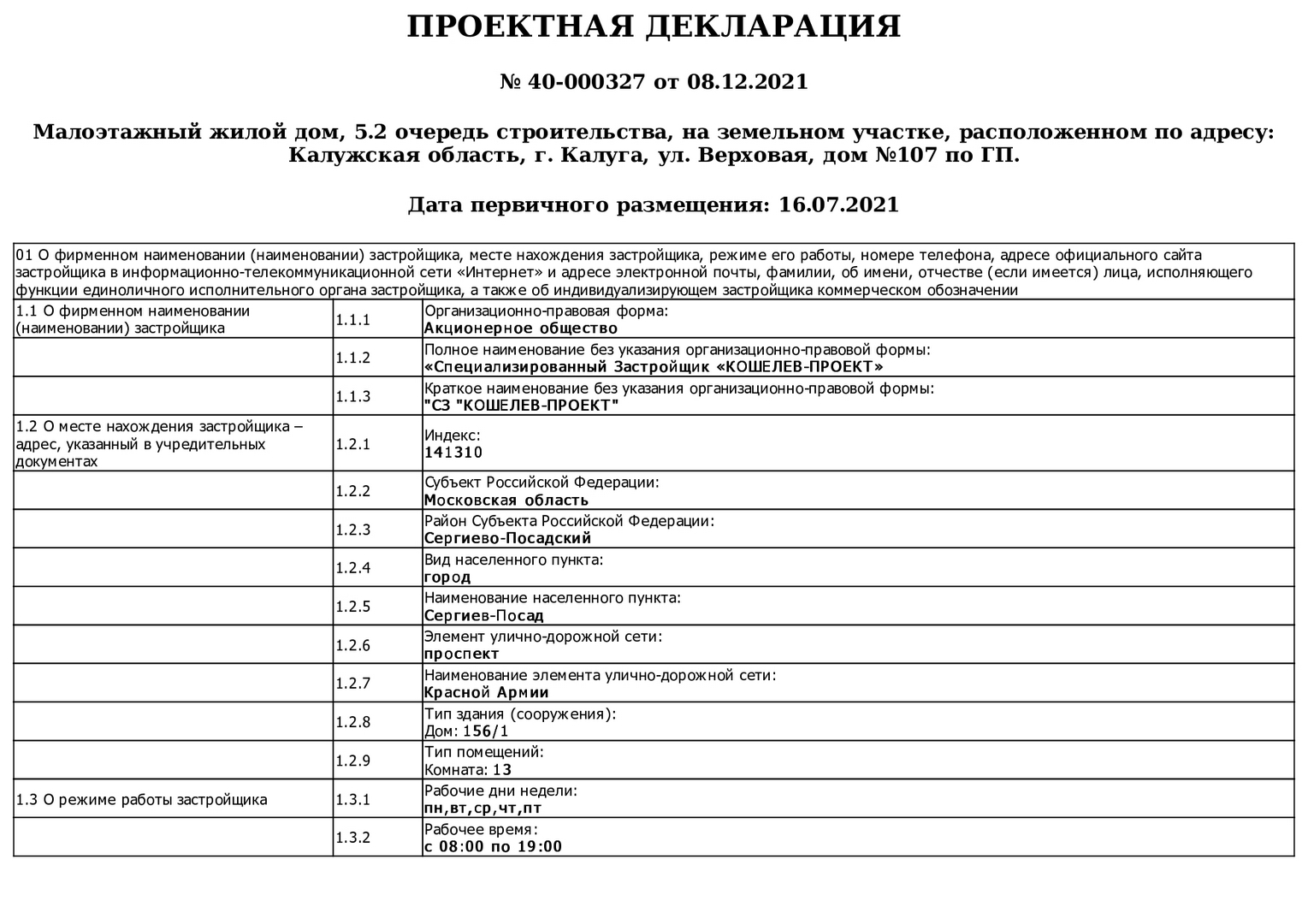 Изменения от 08.12.2021г. к проектной декларации "Малоэтажные жилые дома № 107 по ГП"