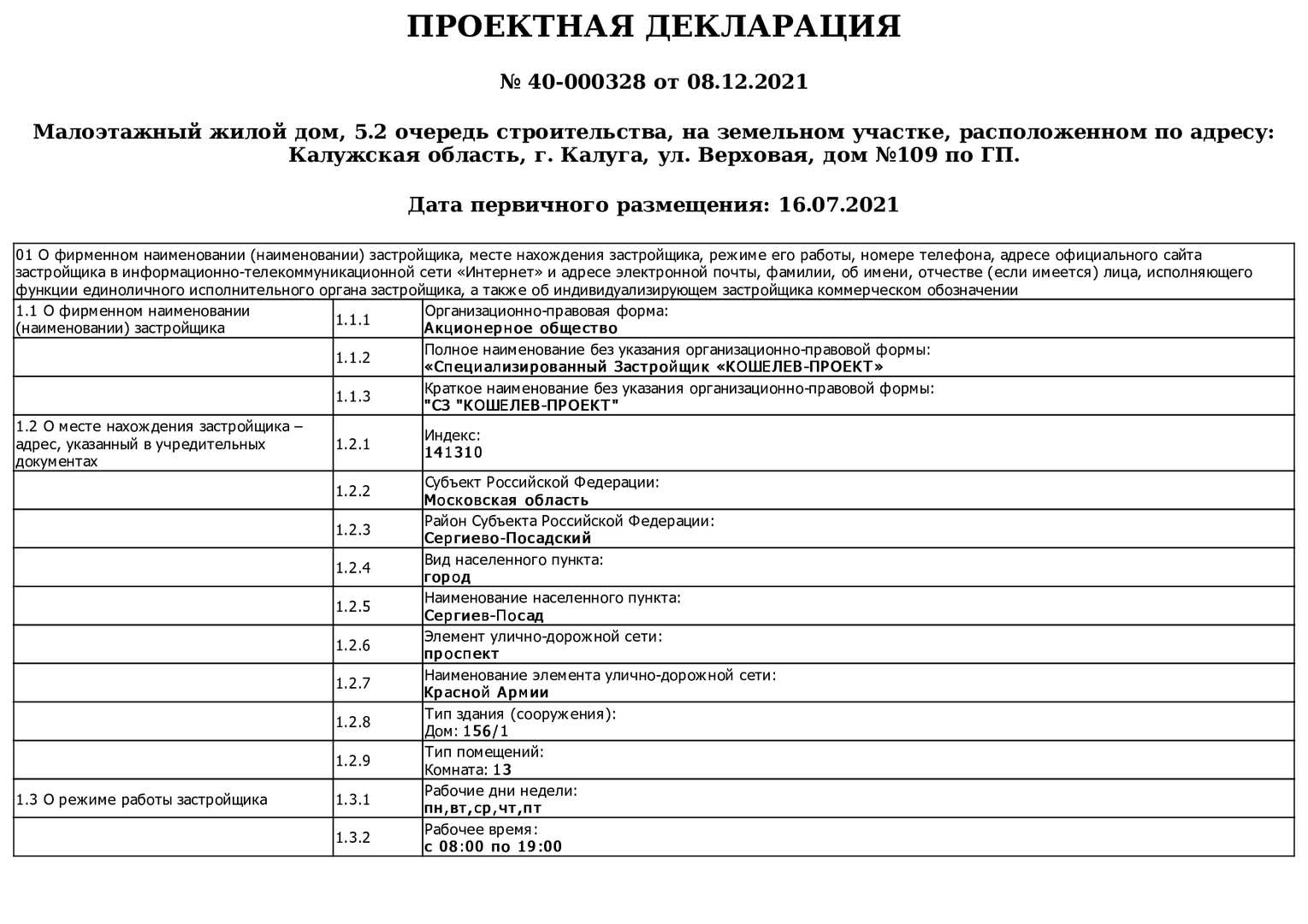 Изменения от 08.12.2021г. к проектной декларации "Малоэтажные жилые дома № 109 по ГП"