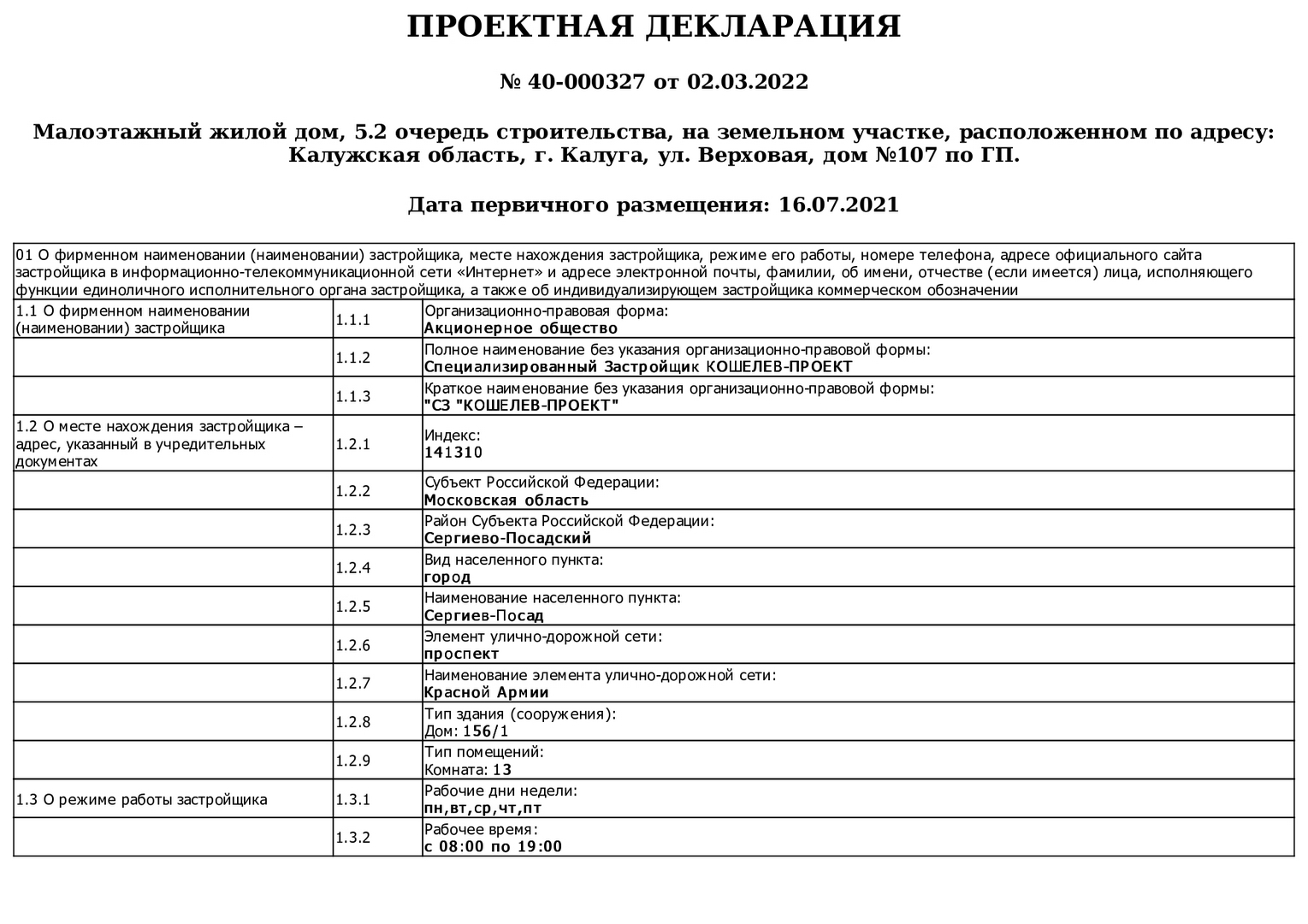 Изменения от 02.03.2022г. к проектной декларации "Малоэтажные жилые дома № 107 по ГП"