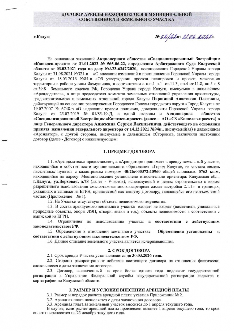 Договоры аренды на земельные участки