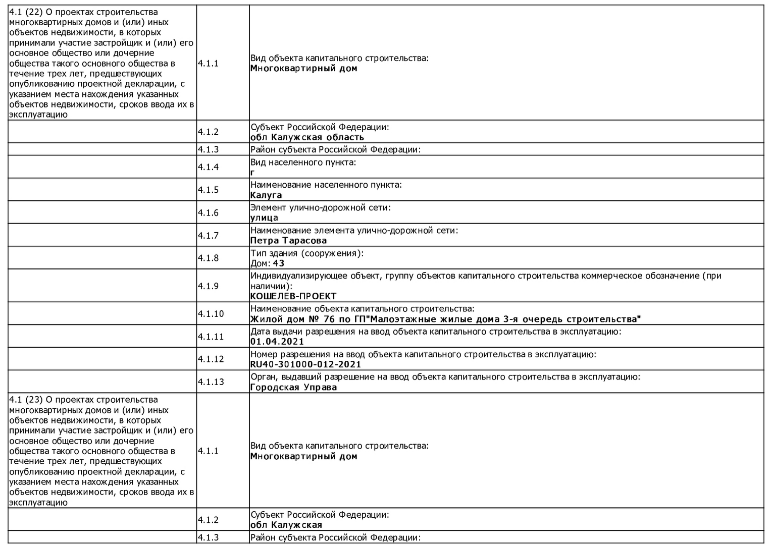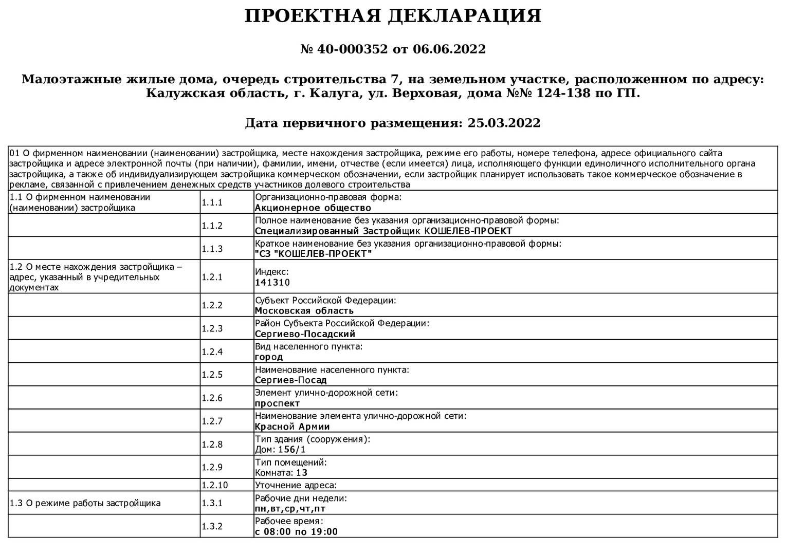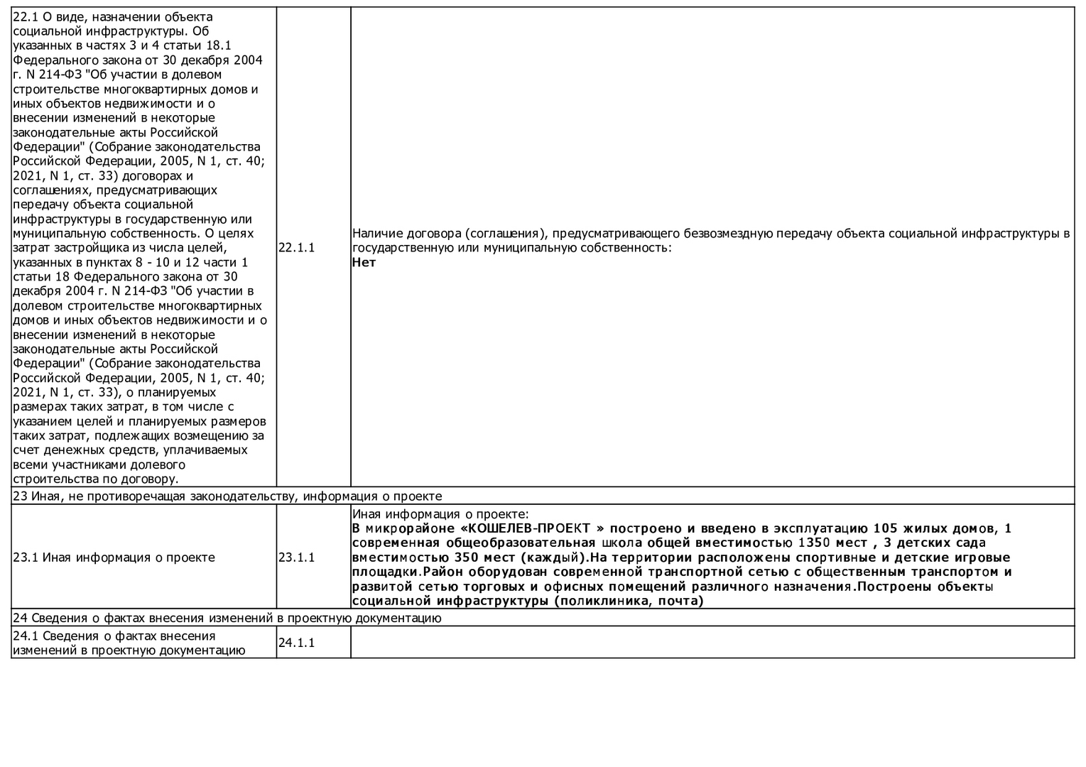 Изменения от 06.06.2022г. к проектной декларации "Малоэтажные жилые дома № 124-138 по ГП"