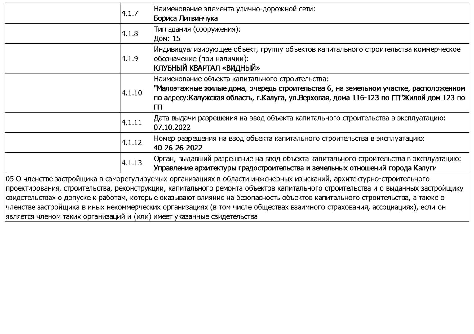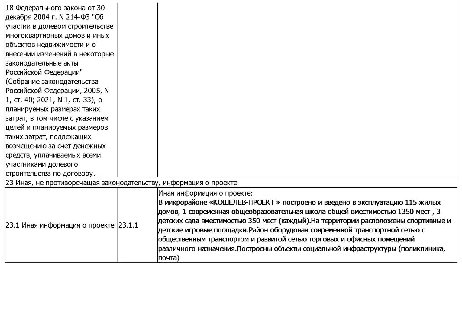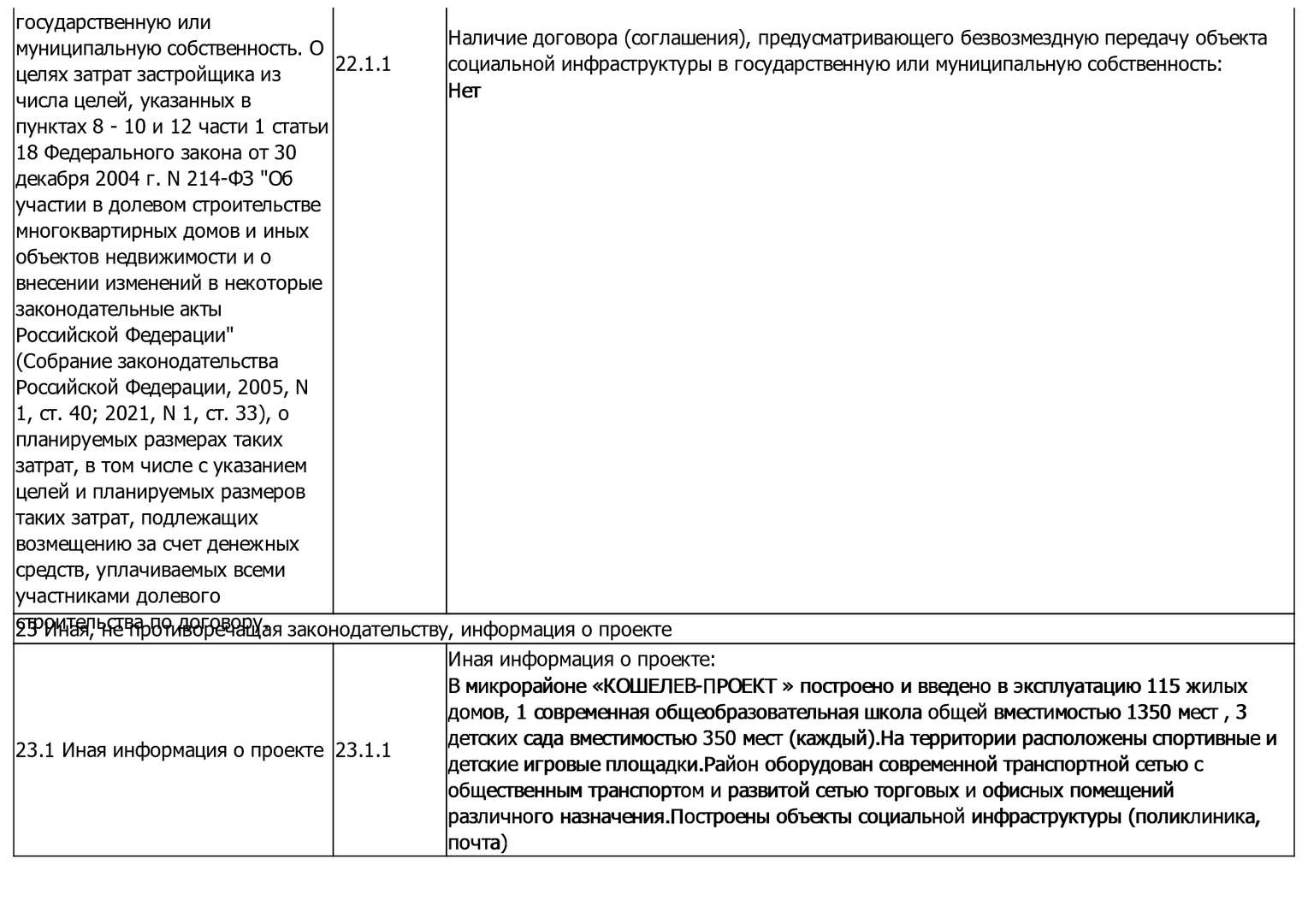 Изменения от 09.01.2023 г. к проектной декларации "Малоэтажные жилые дома № 124-138 по ГП"