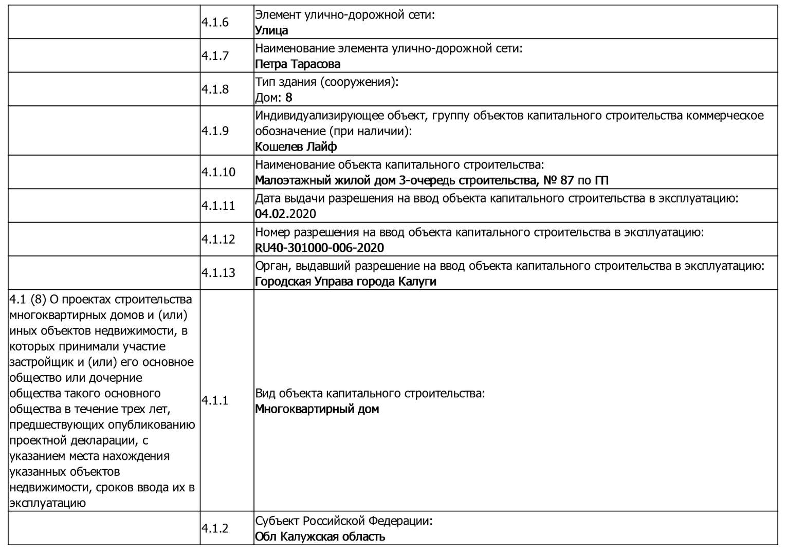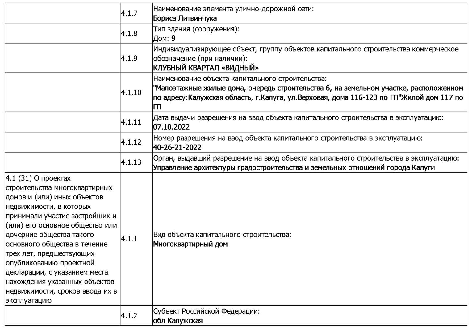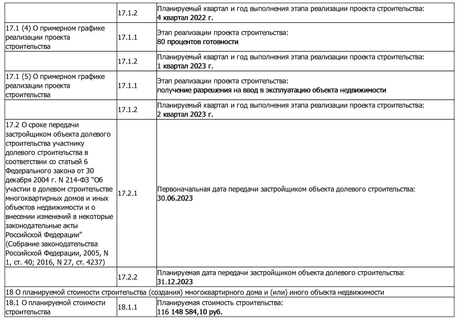 Изменения от 09.01.2023 г. к проектной декларации "Малоэтажные жилые дома № 124-138 по ГП"