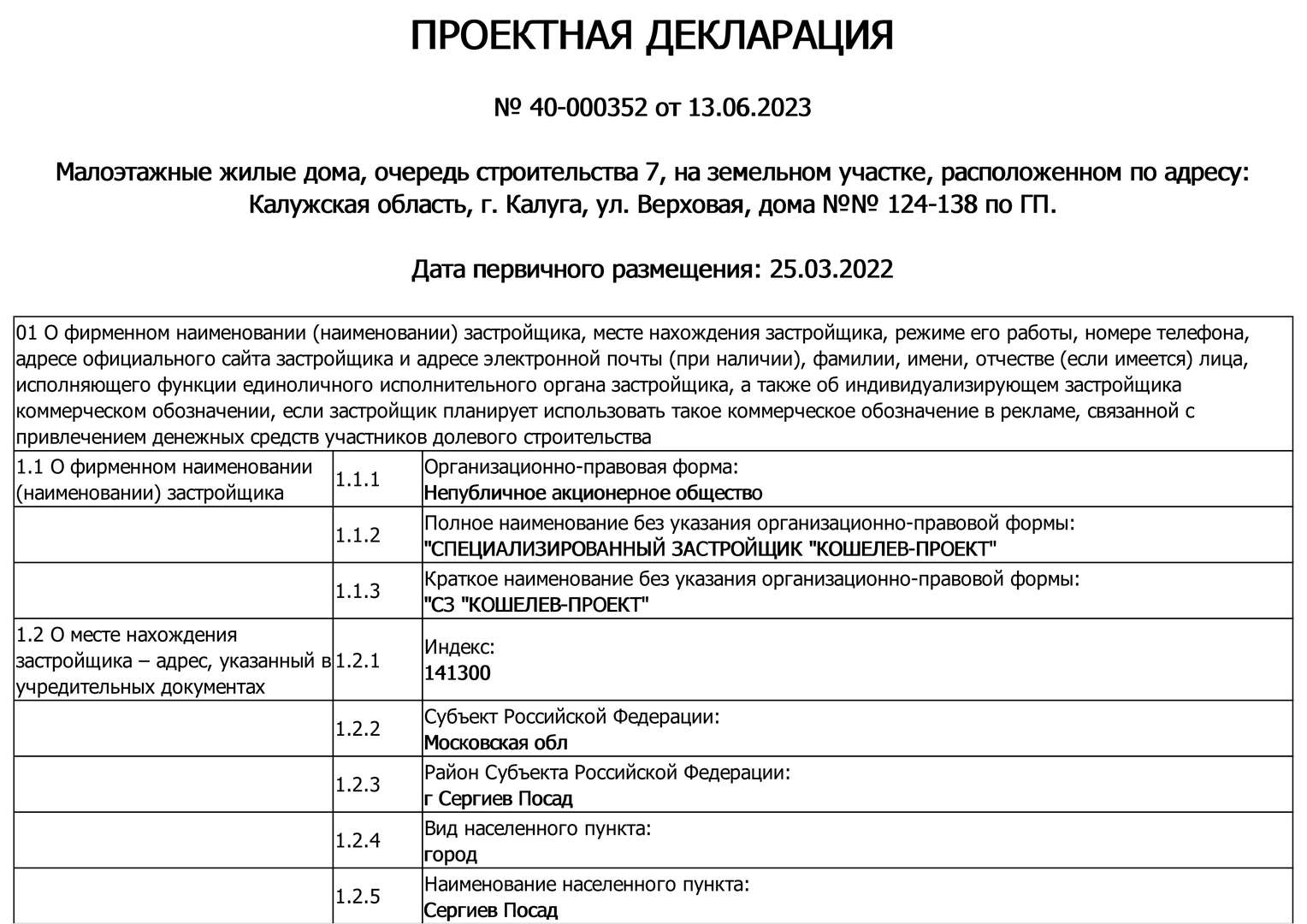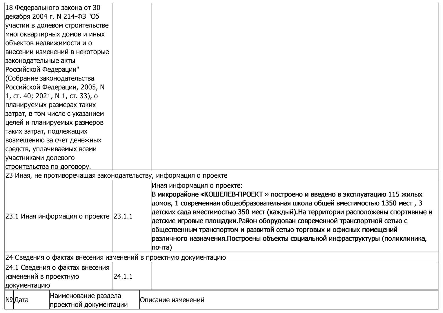 Изменения от 13.06.2023 г. к проектной декларации "Малоэтажные жилые дома № 124-138 по ГП"