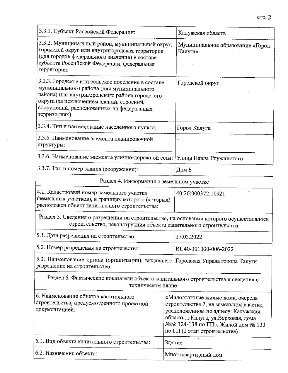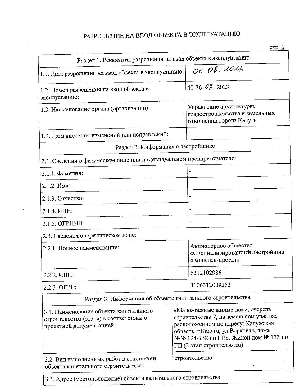 Разрешение на ввод объекта в эксплуатацию 133 по ГП