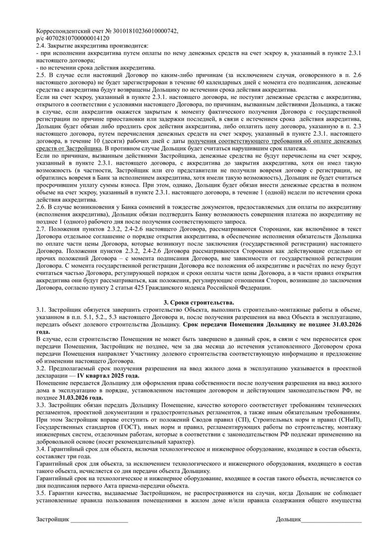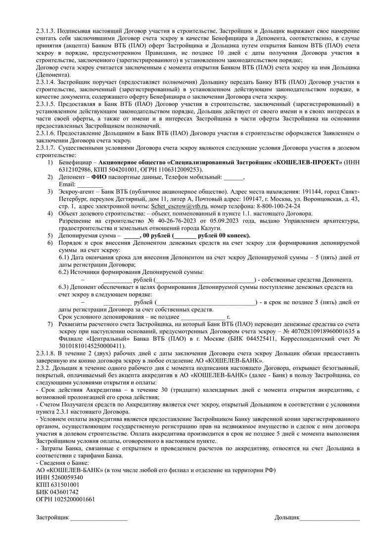 ДДУ КП-1 кладовые эскроу ВТБ, наличные ср-ва + аккредитив КБ
