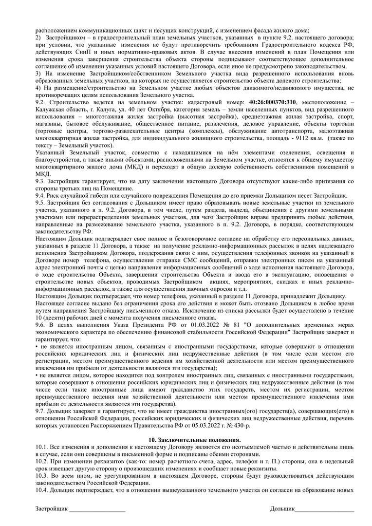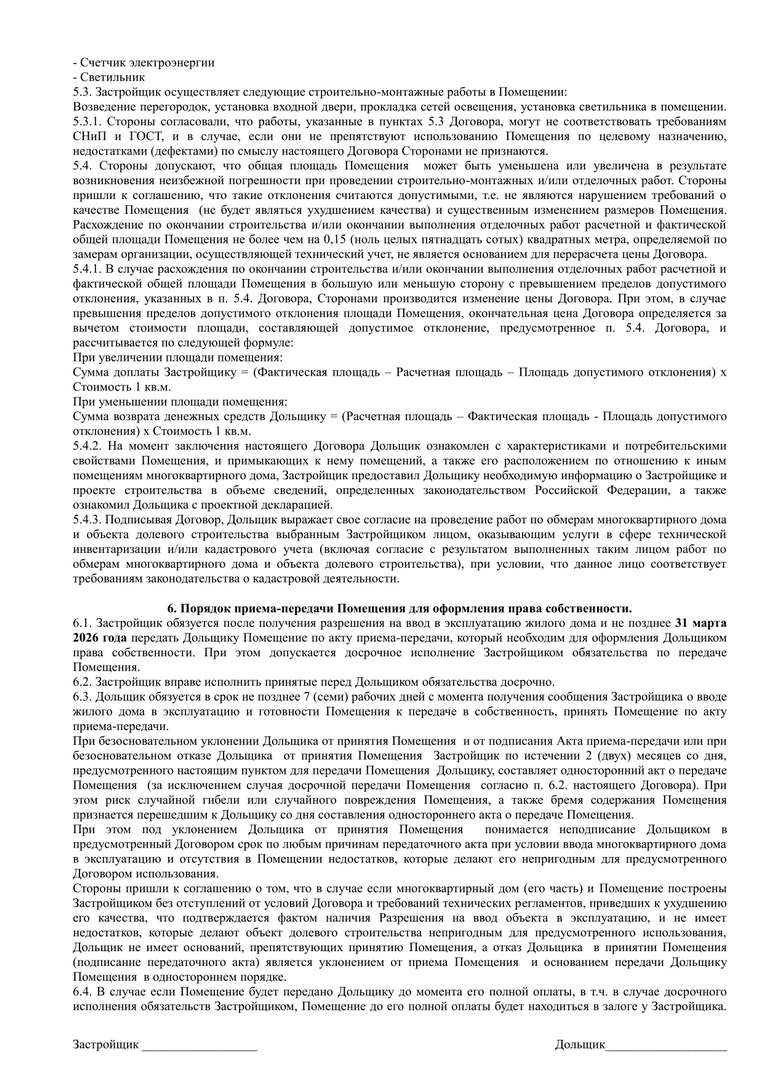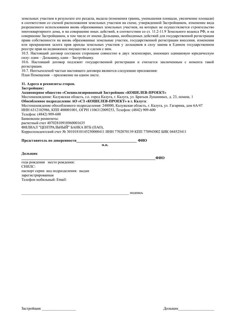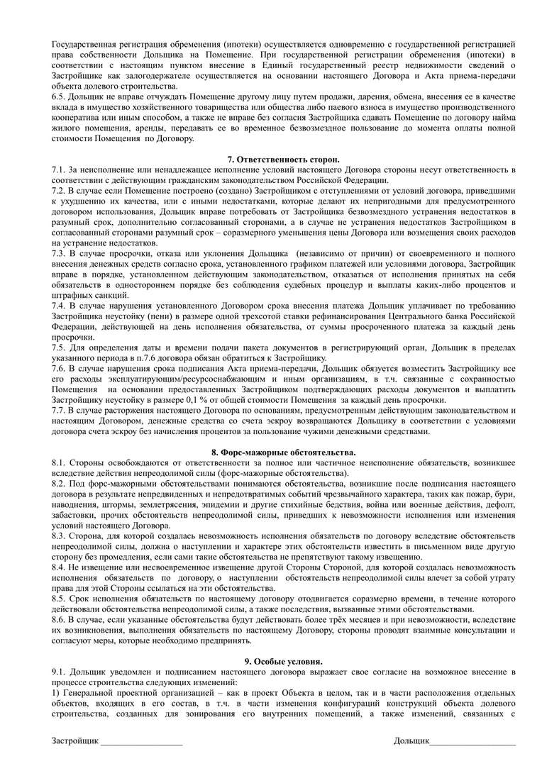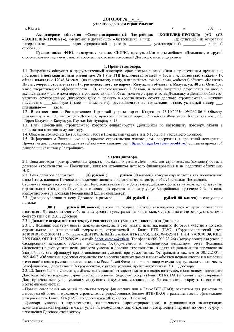 Проект договора участия в долевом строительстве.