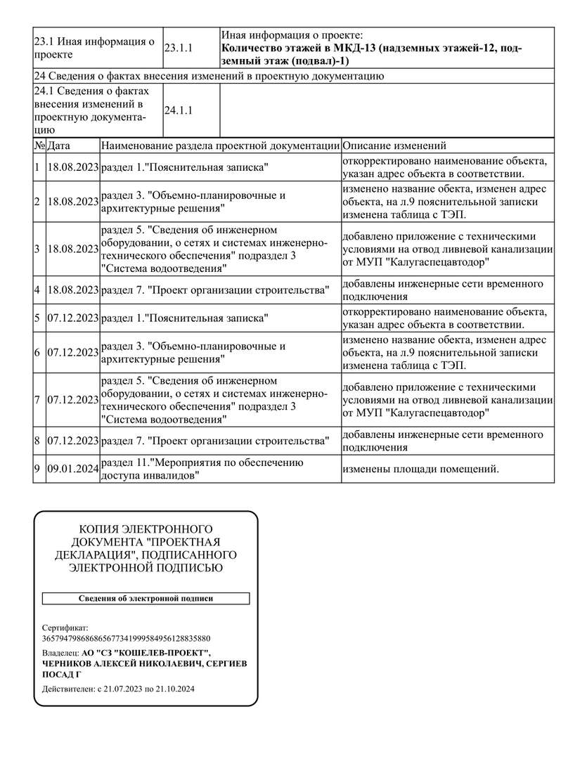 Проектная декларация от 03.05.2024 "Кошелев Парк" очередь строительства 1, дом № 1 по ГП