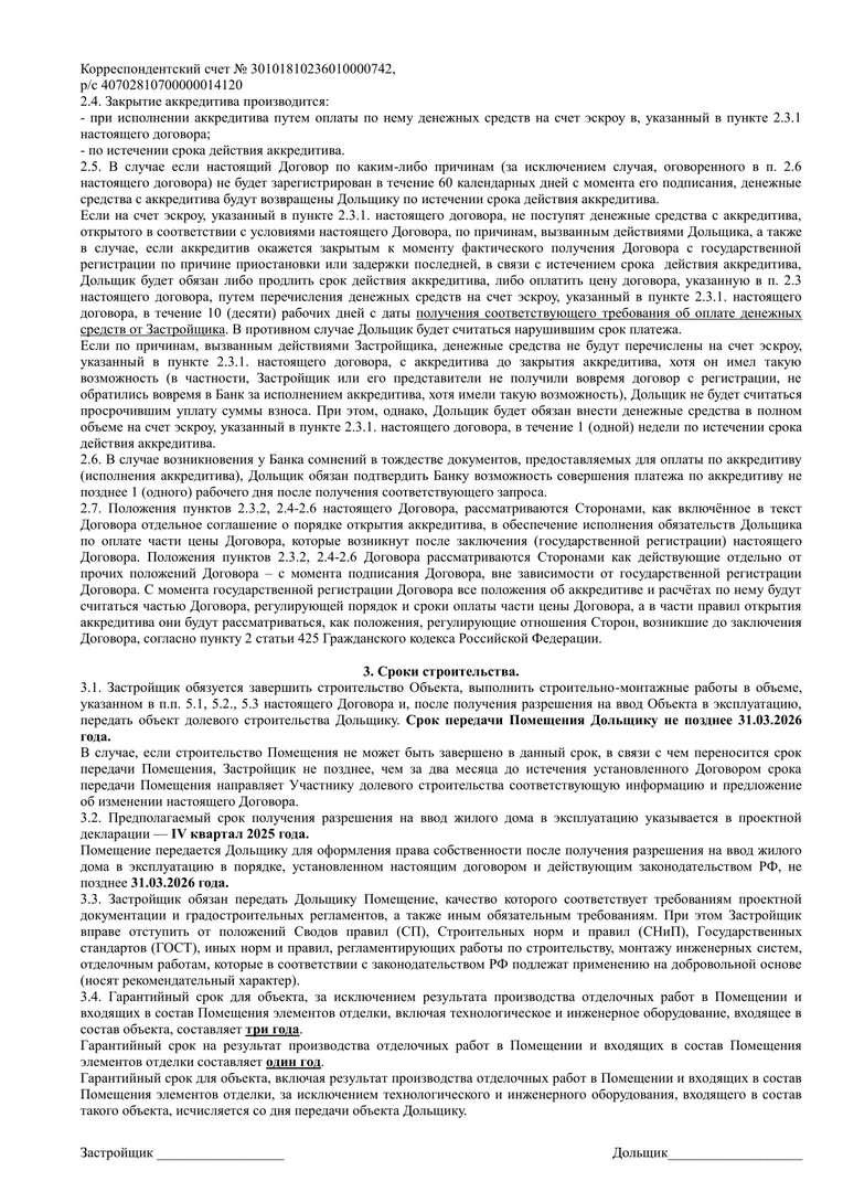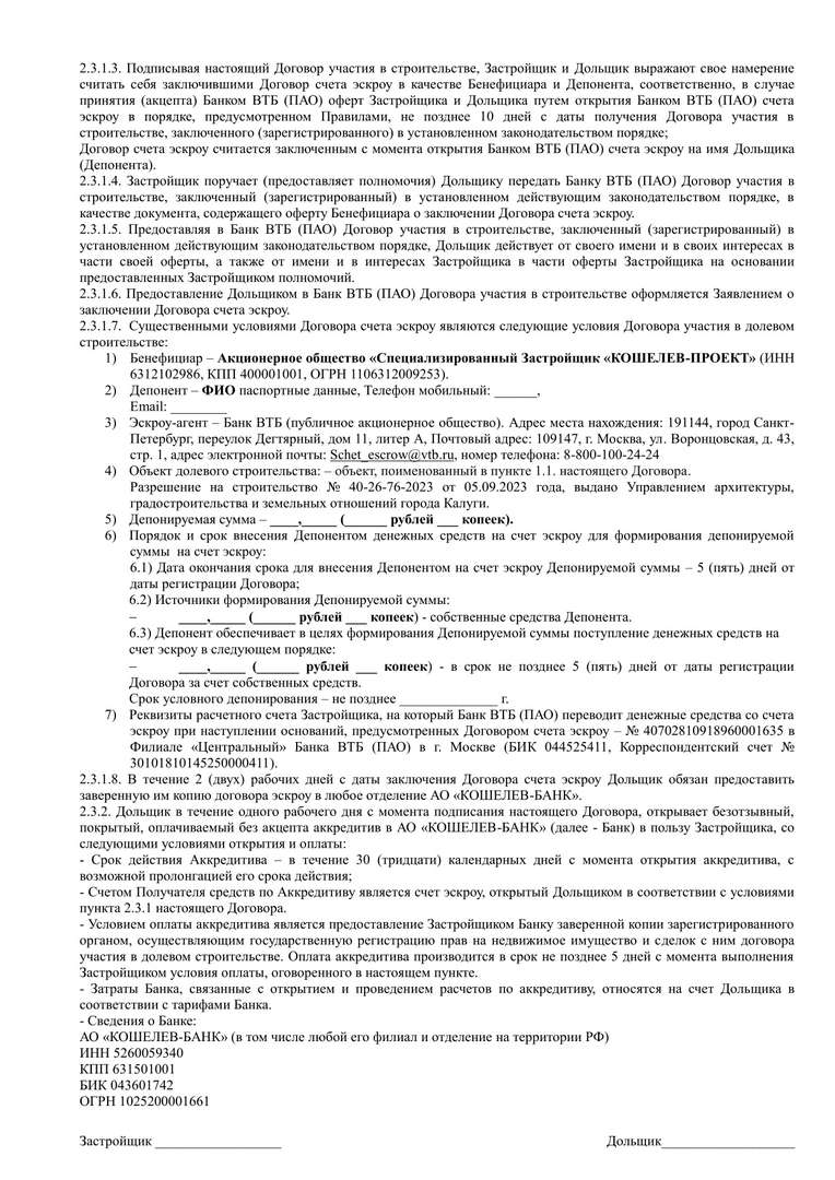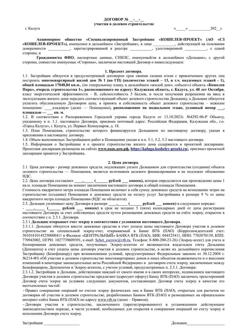 ДДУ КП-1 кладовые эскроу ВТБ, наличные ср-ва + аккредитив КБ (ред. 24.01.2025)
