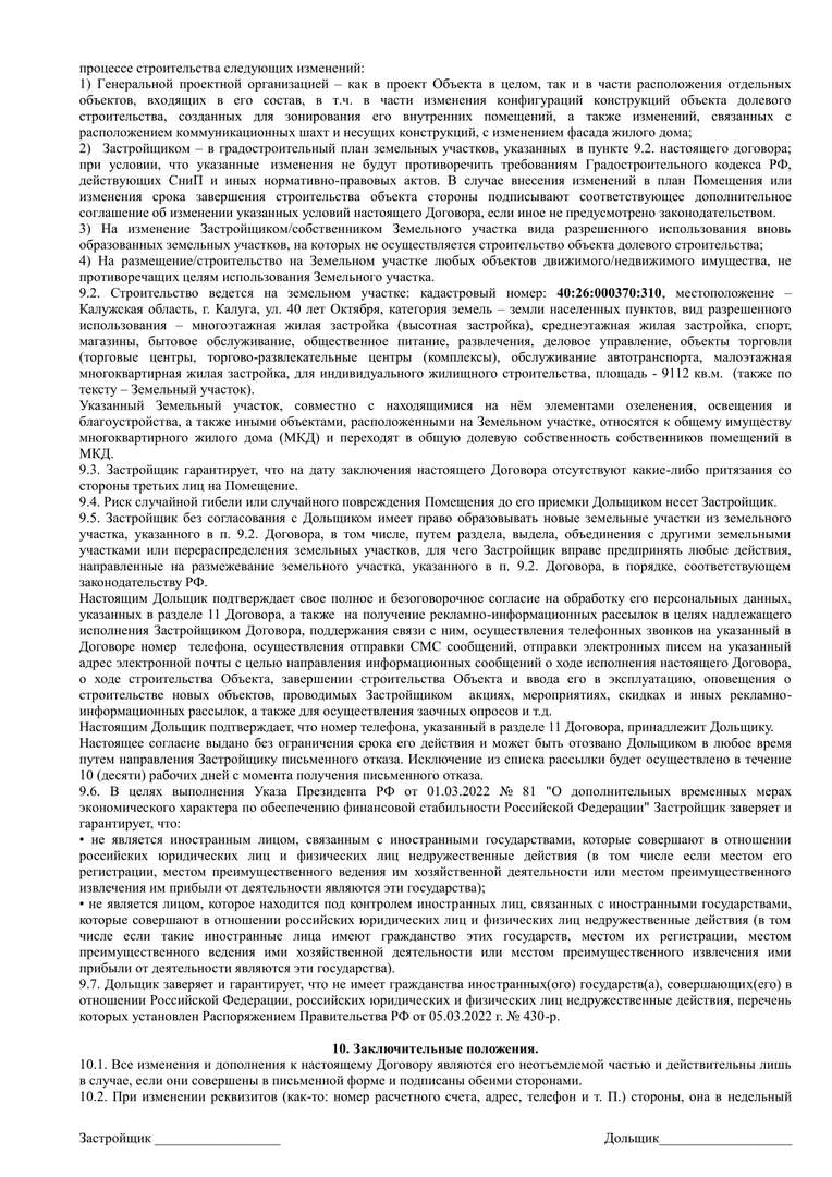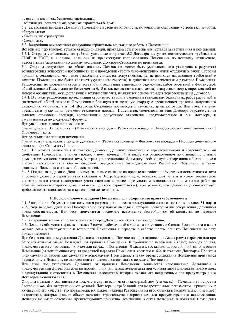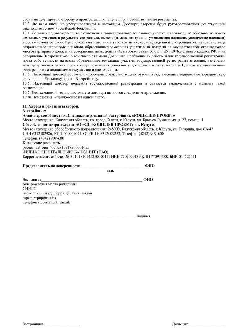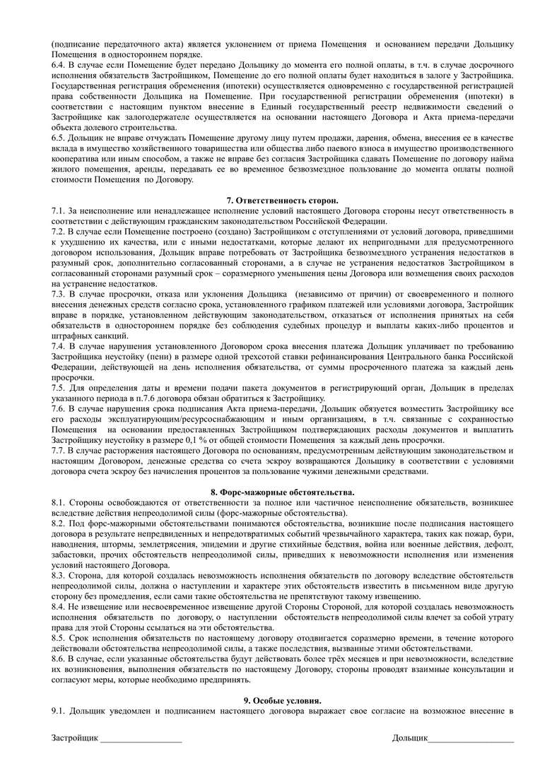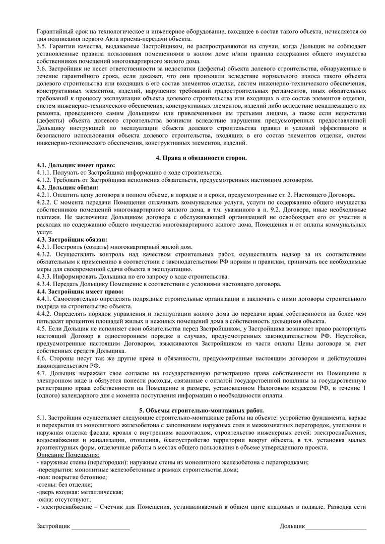 Проект договора участия в долевом строительстве.