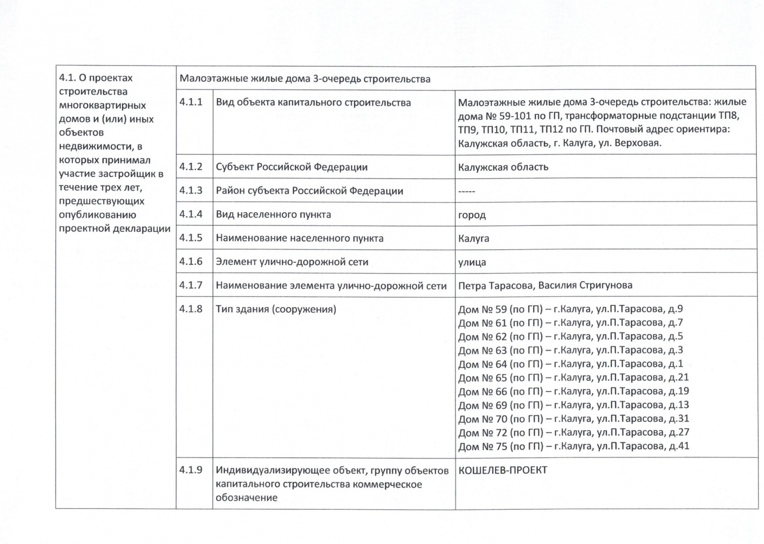 Проектная декларация Малоэтажный жилой дом, 3-я очередь строительства, № 84 по ГП от 31.05.2017