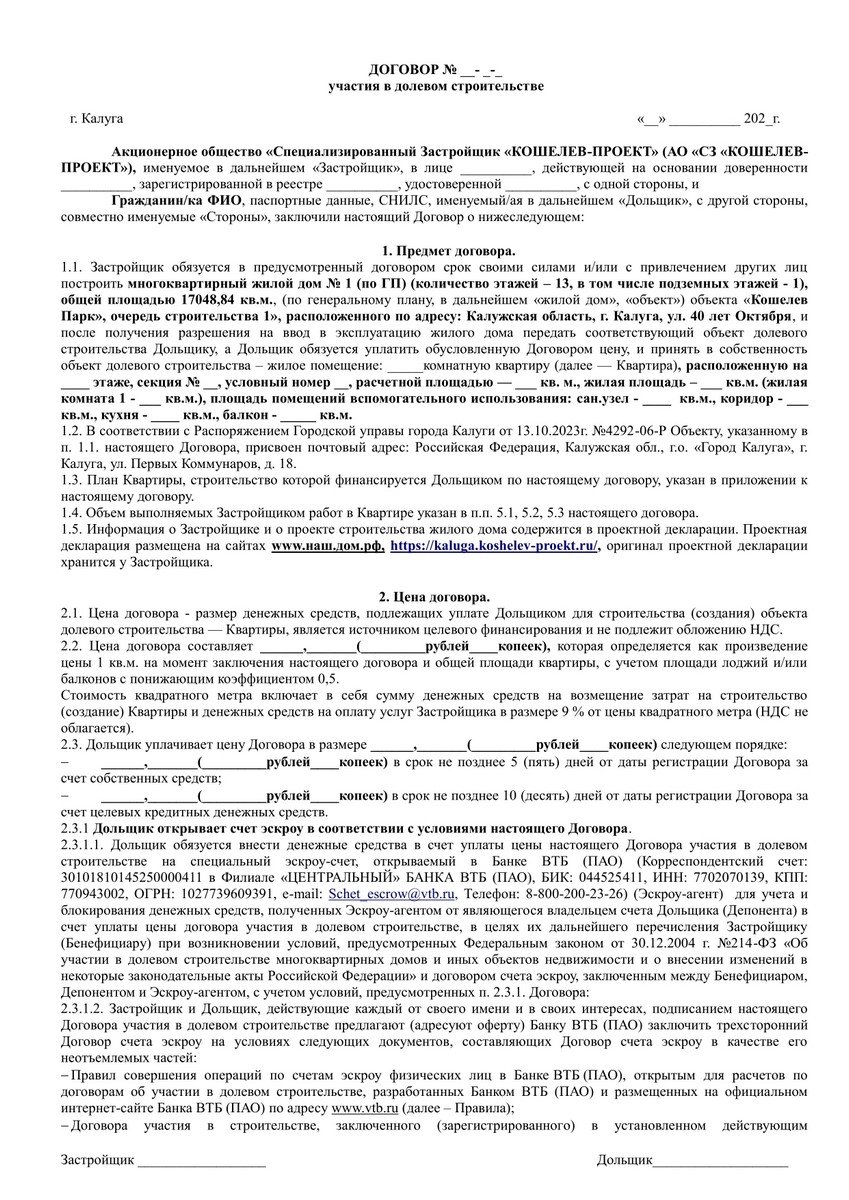 ДДУ КП-1 эскроу ВТБ, ипотека Сбербанк (ред. 16.06.2025)