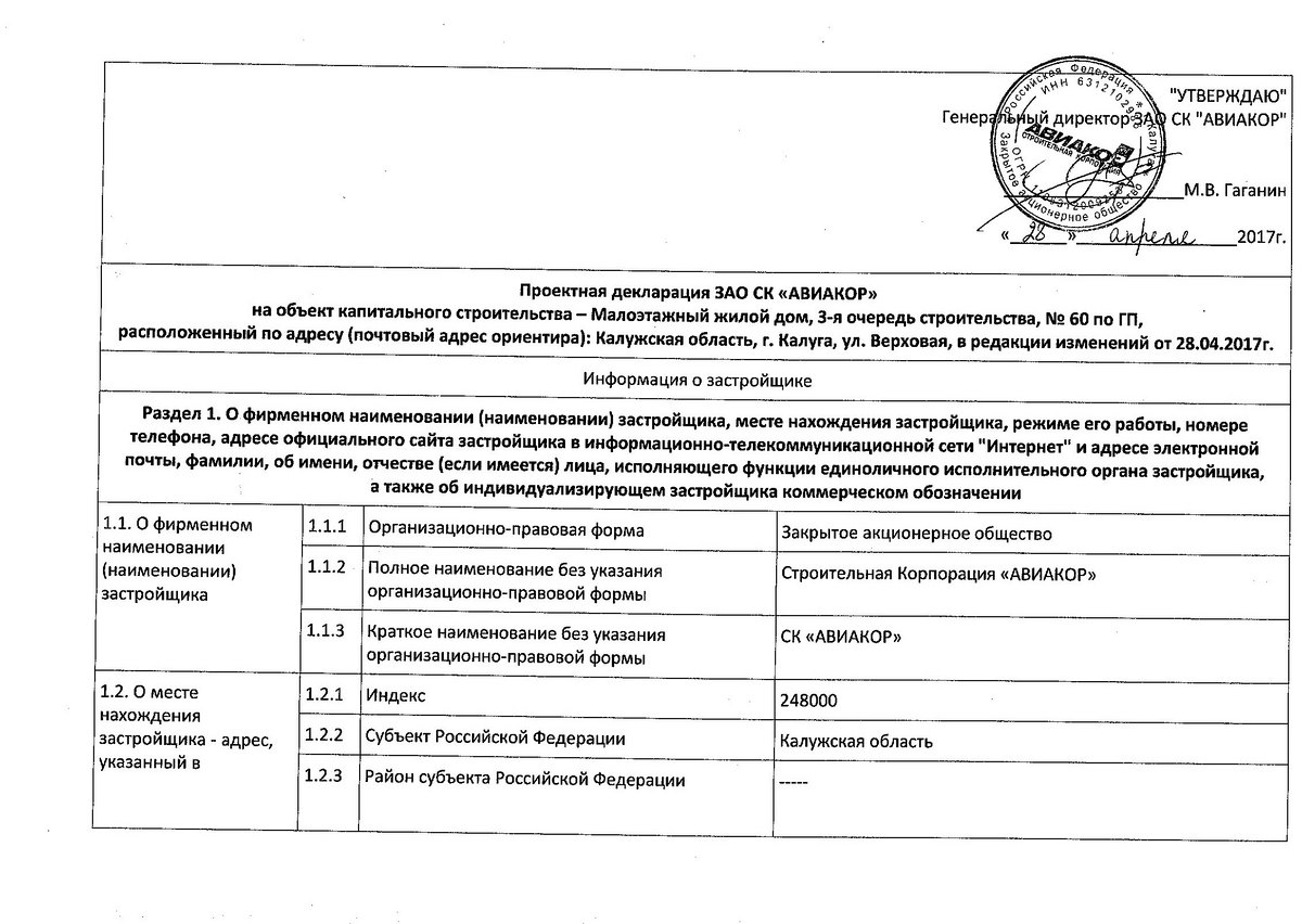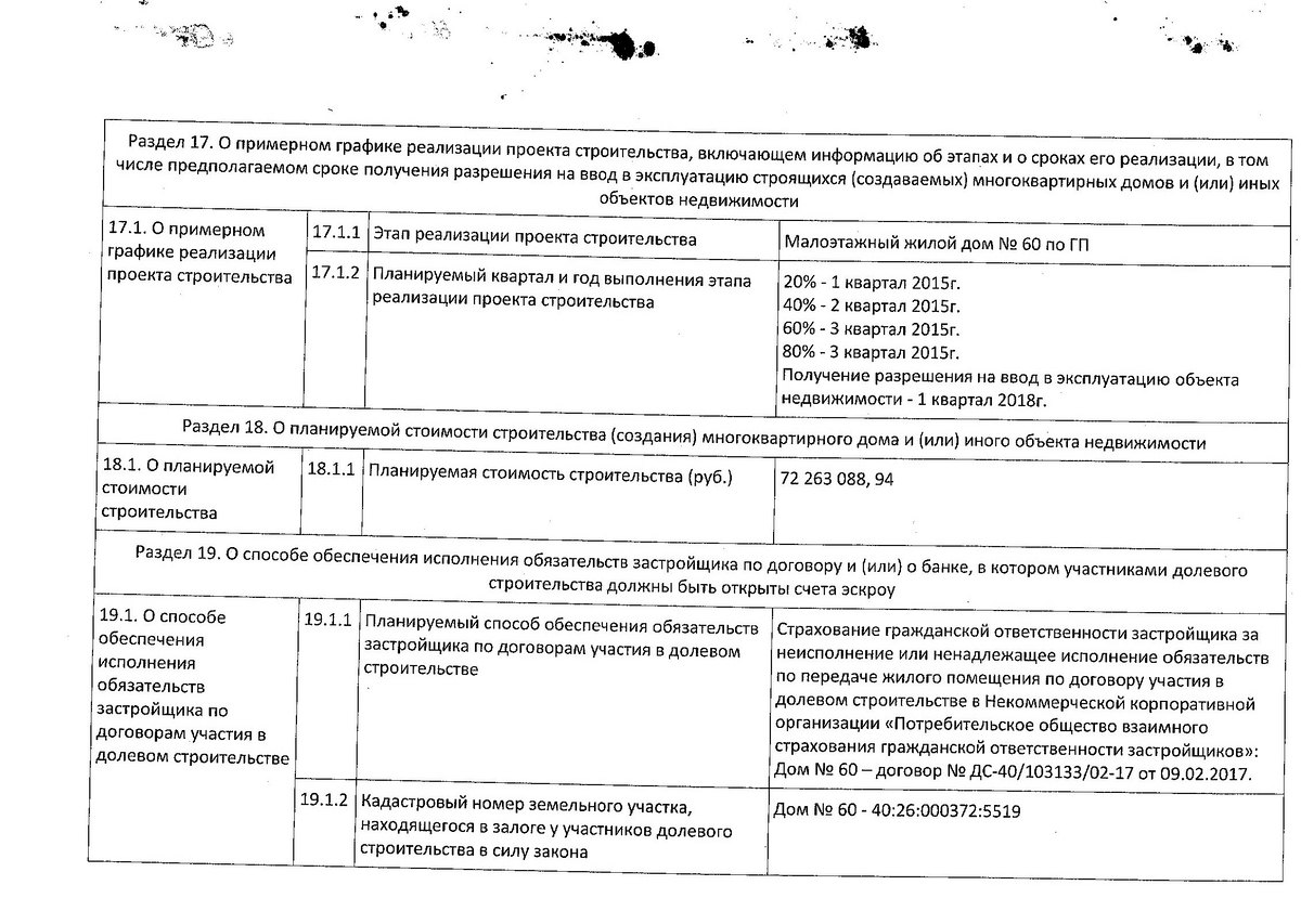 Проектная декларация "Малоэтажный жилой дом №60 по ГП", в редакции изменений от 28.04.2017г.