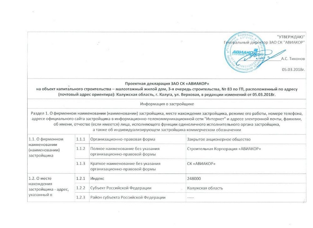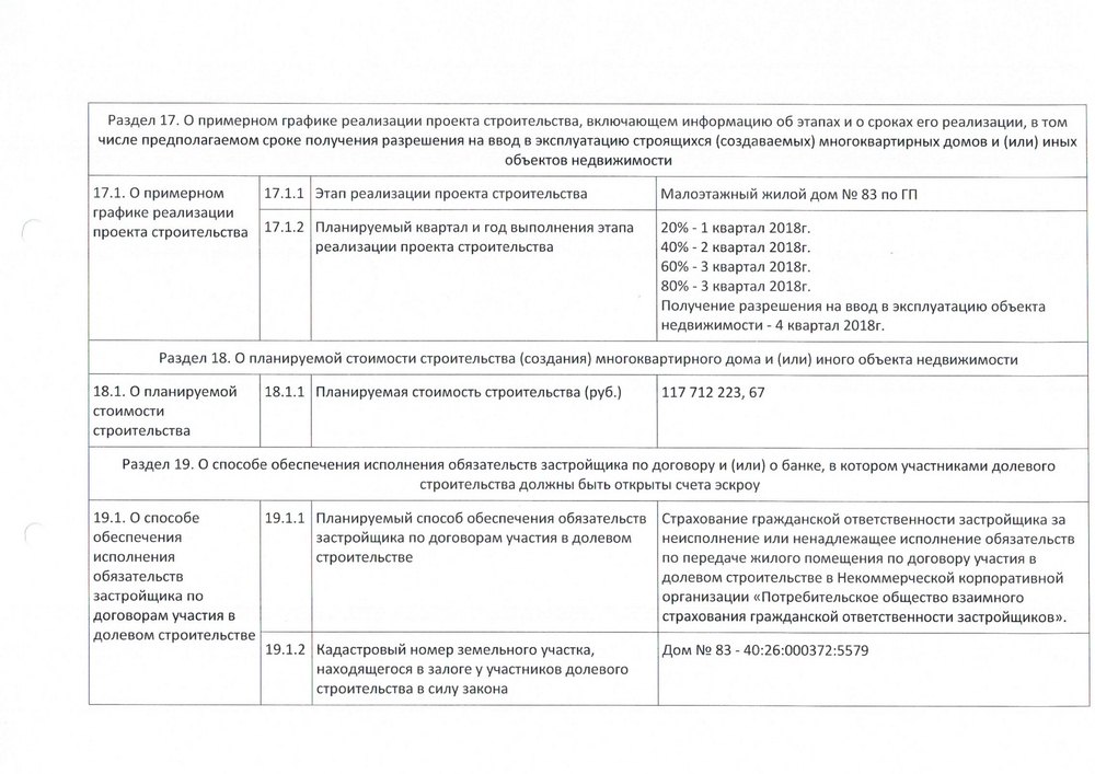 Проектная декларация "Малоэтажный жилой дом №83 по ГП", в редакции изменений от 05.03.2018г.