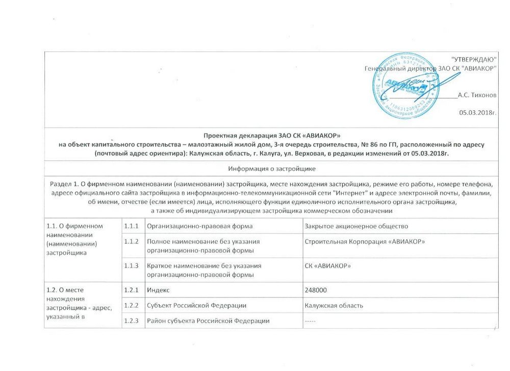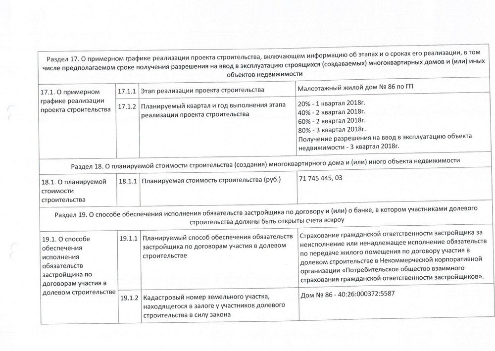 Проектная декларация "Малоэтажный жилой дом №86 по ГП", в редакции изменений от 05.03.2018г.
