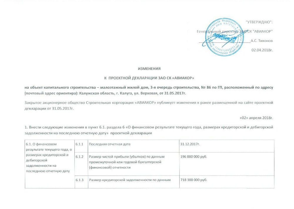 Изменения от 02.04.2018г. к проектной декларации "Малоэтажный жилой дом №86 по ГП" от 31.05.2017г.