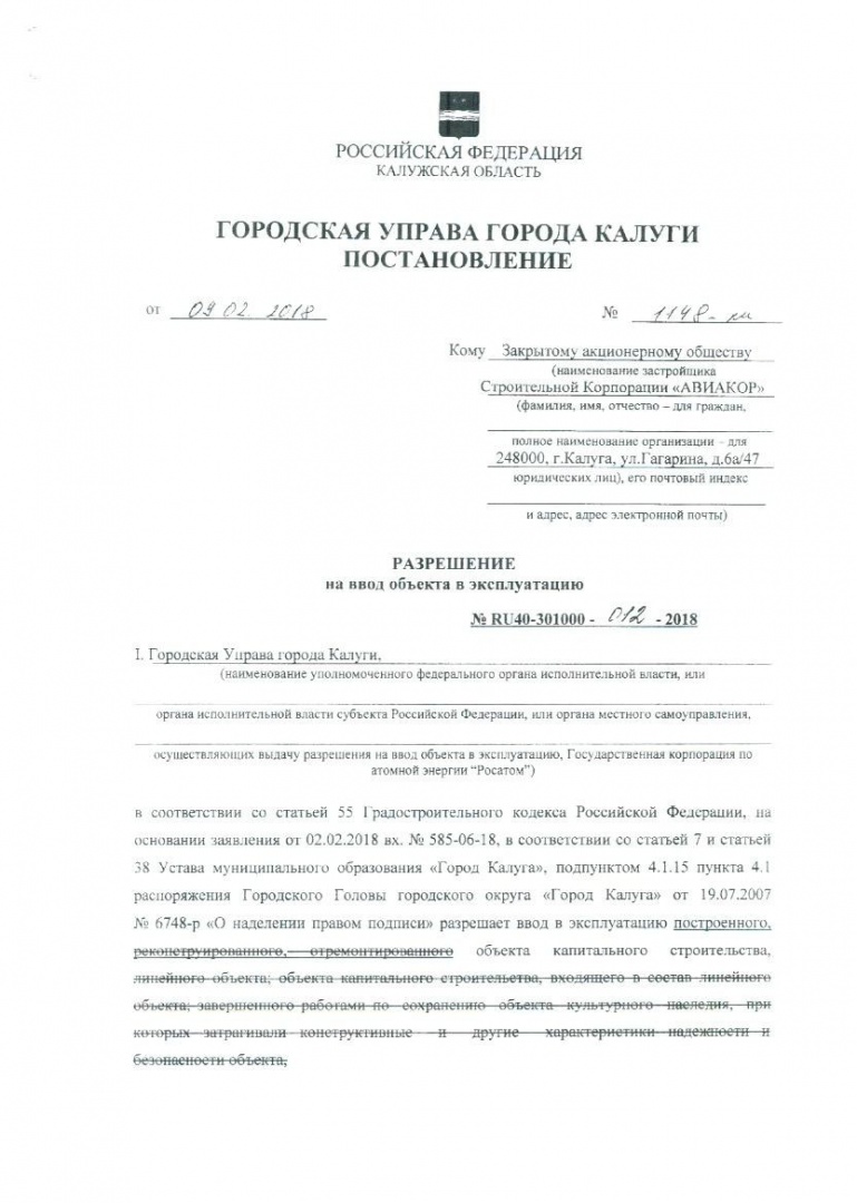 Разрешения на ввод объектов в эксплуатацию